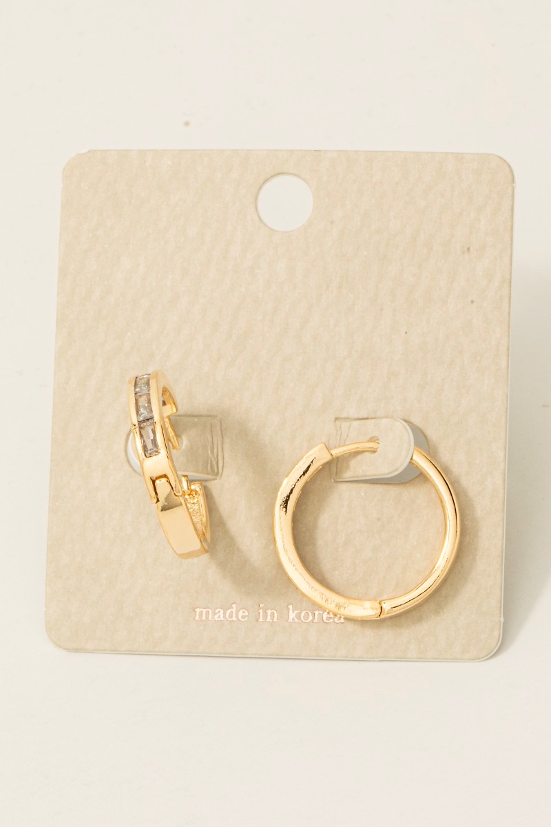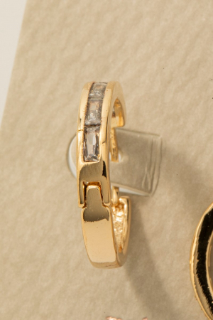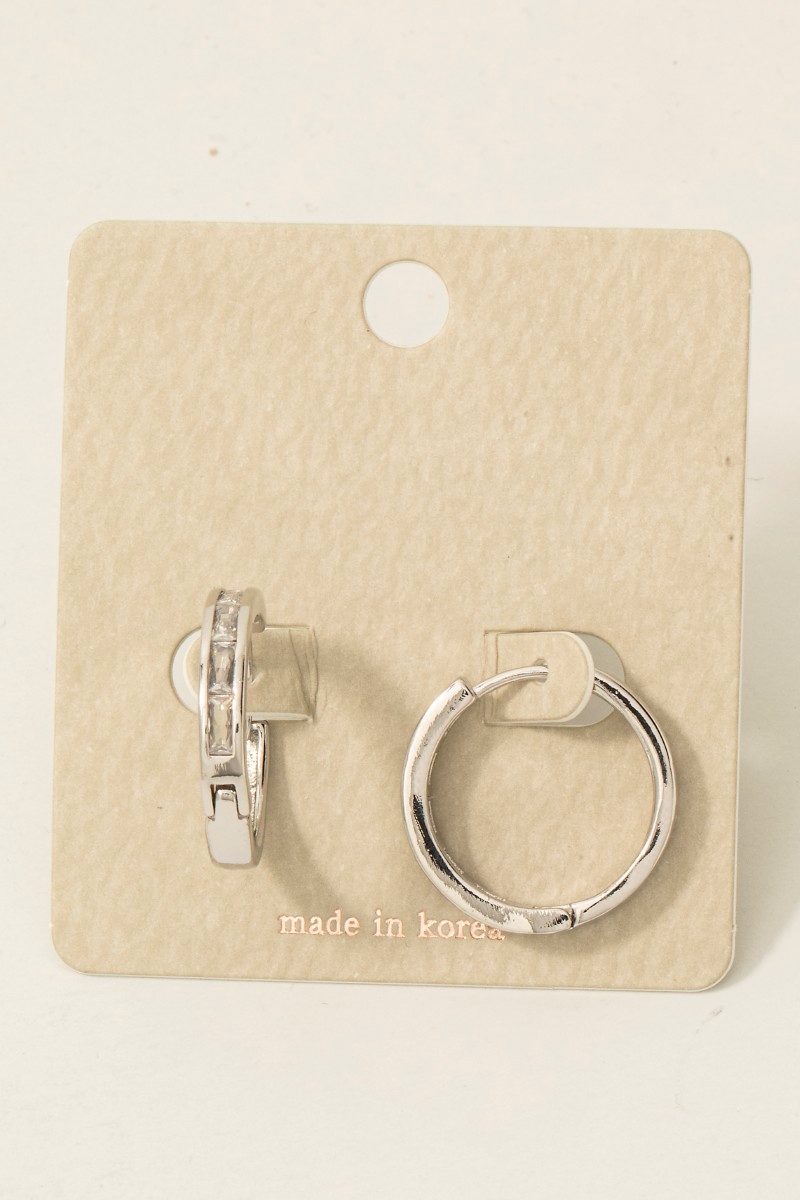 - This pair of hoop earrings showcases a timeless baguette pave hinge style. Discover the perfect balance of subtlety and flair as this pair of hoop earrings effortlessly completes your look.