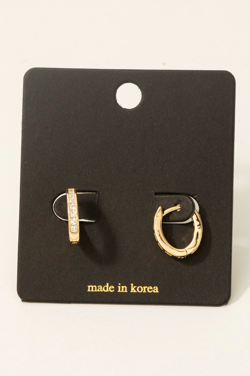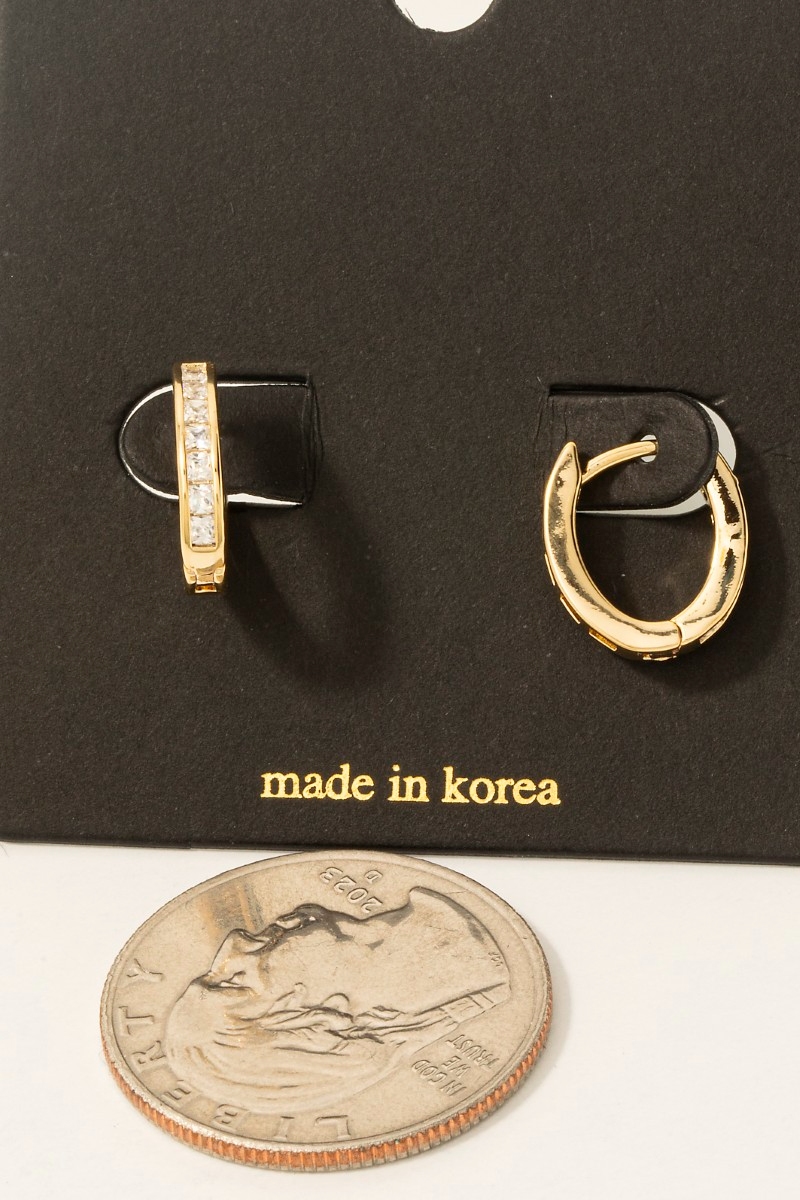 Gold Dipped Cz Stud End Hinge Hoop Earrings
