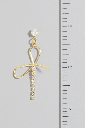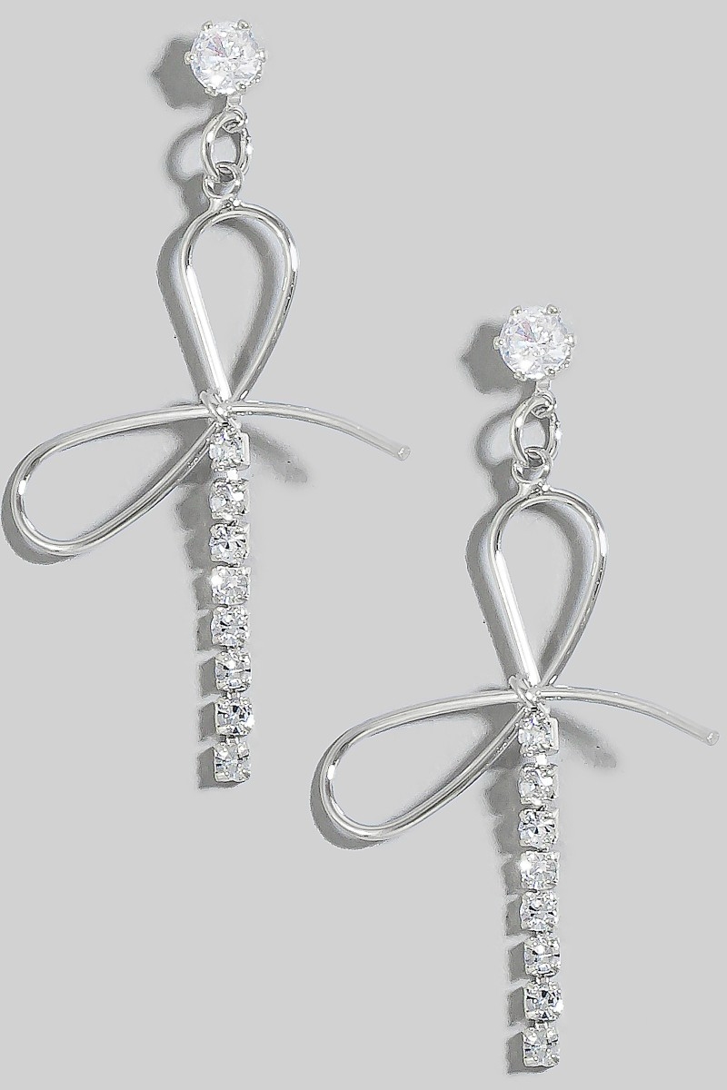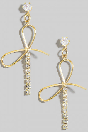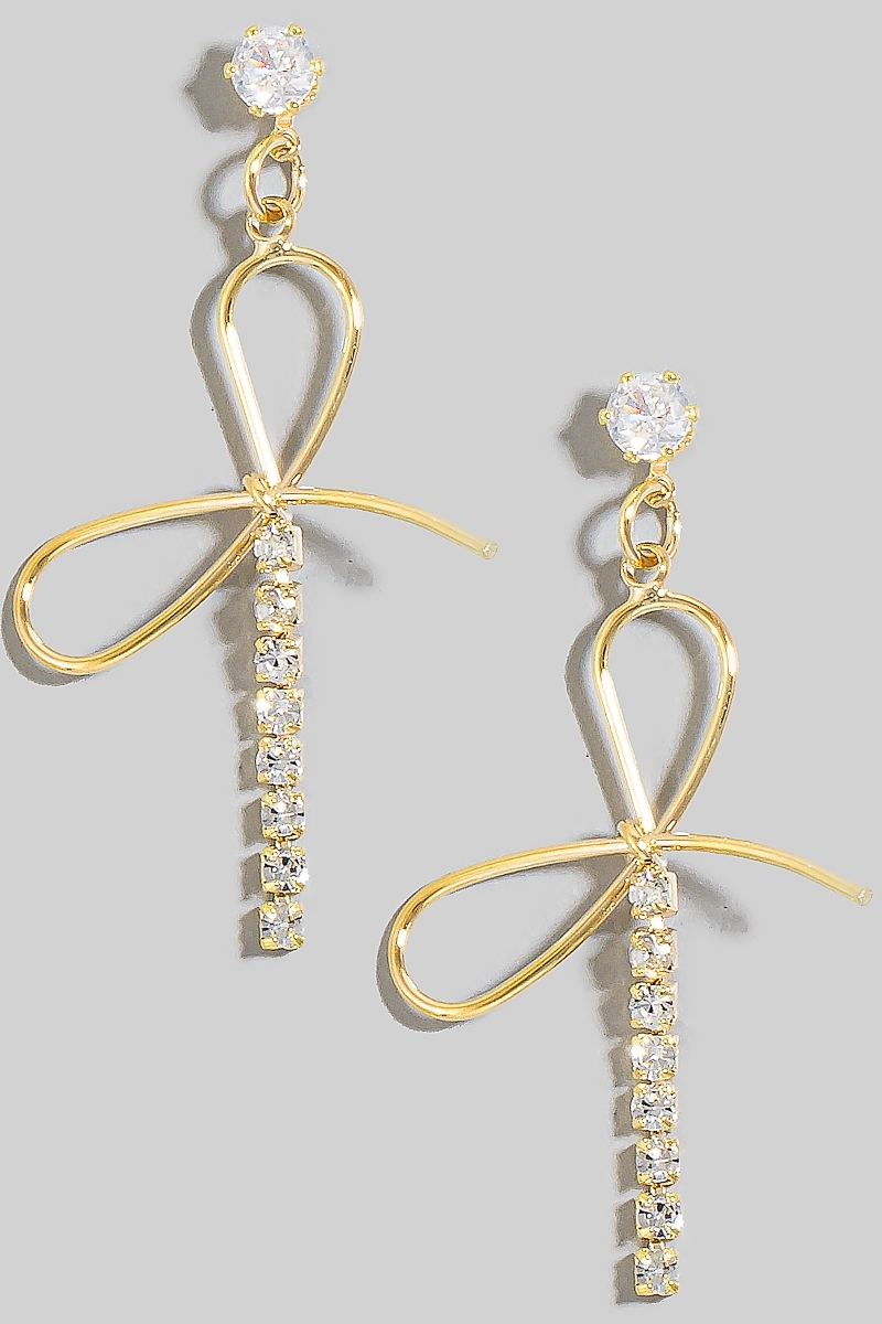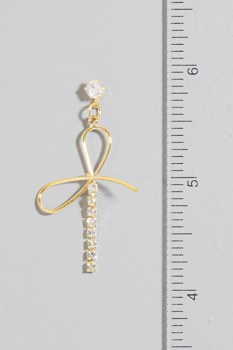 - This pair of dangle earrings brings a unique dainty glass studs ribbon bow style. Revel in the intricate design that effortlessly distinguishes this pair of dangle earrings, making it a statement piece.