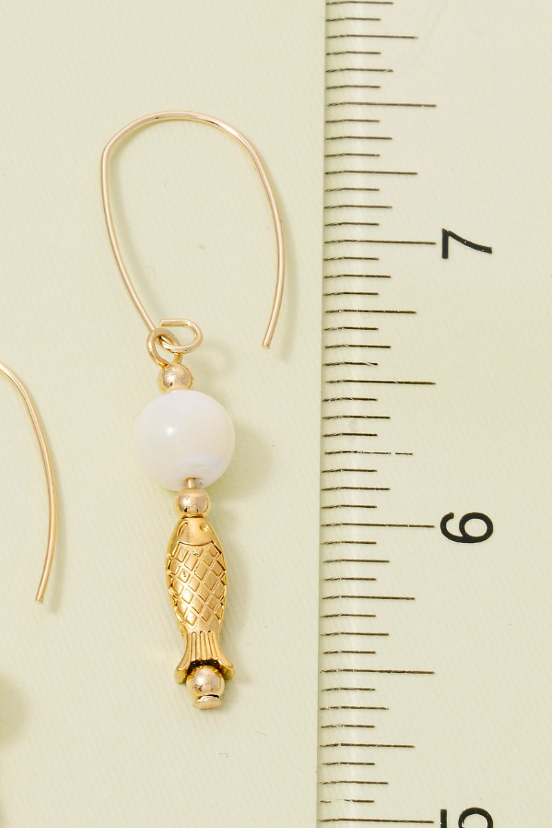 • This pair of dangle earrings adds a modern fish and bead charm style. Savor the craftsmanship that goes beyond the ordinary, as this pair of dangle earrings effortlessly captivates attention.