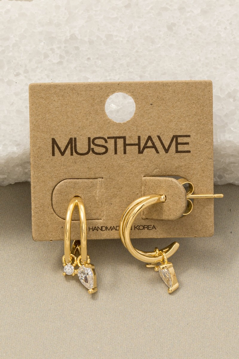 - This pair of hoop earrings brings a unique gold dipped cubic zirconia two row style. Step into a world of refined taste as this pair of hoop earrings effortlessly refines the details of your outfit.