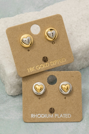 - This pair of stud earrings introduces a unique gold dipped mini heart coin style. Immerse yourself in fashion finesse with this statement pair of stud earrings.