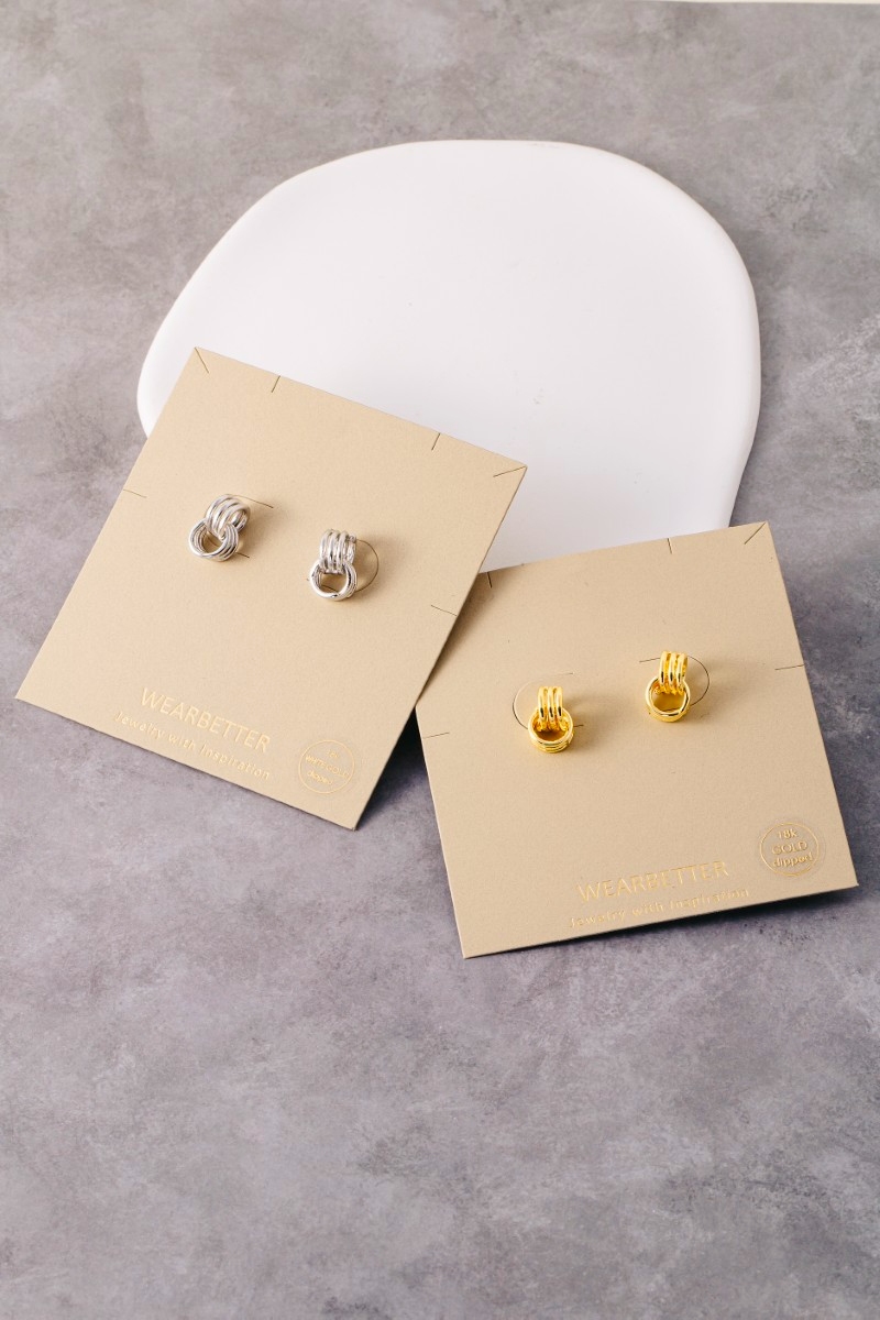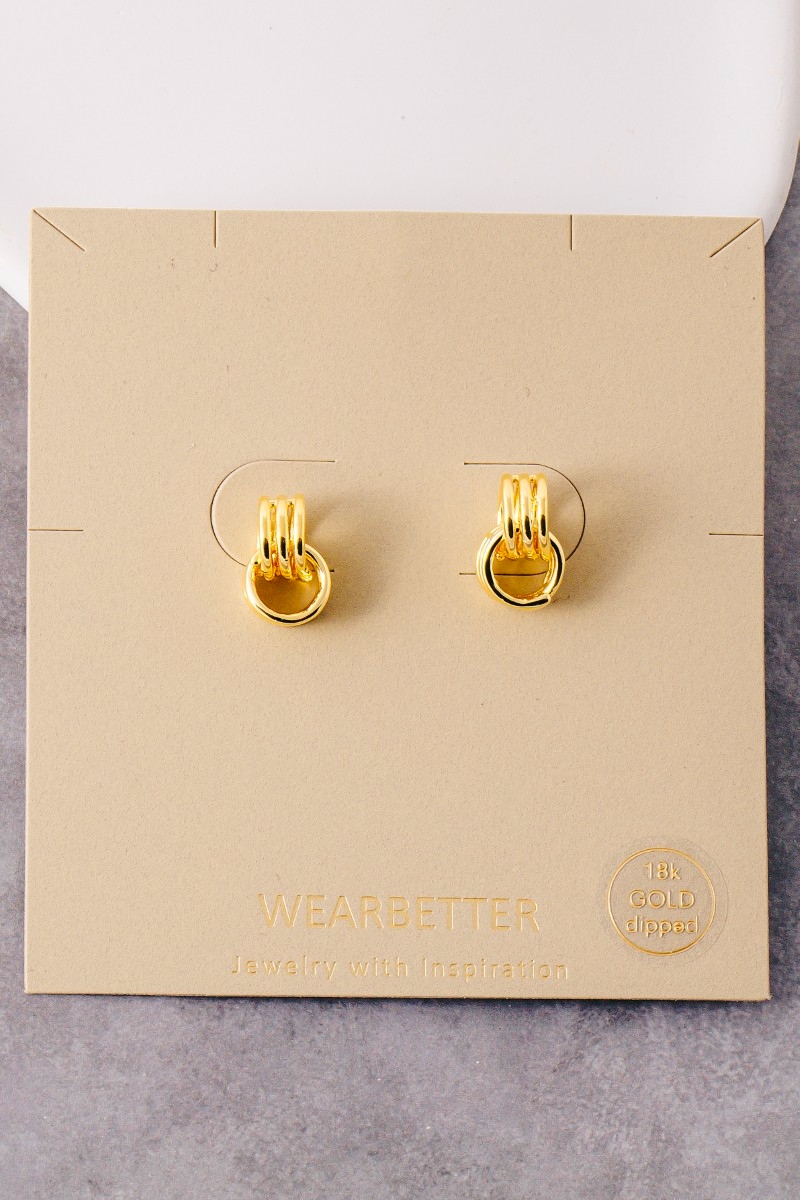 - This pair of stud earrings introduces a unique gold dipped mini hoop knot style. Celebrate individual style with this versatile, eye-catching addition.