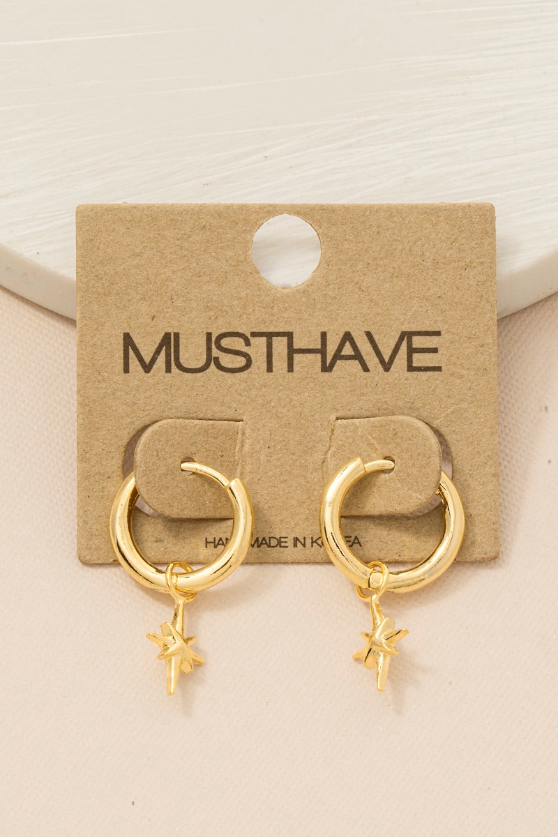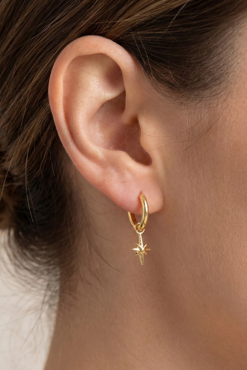 - This pair of hoop earrings showcases a timeless gold dipped star drop style. Celebrate the art of accessorizing with this piece that effortlessly encapsulates modern trends.