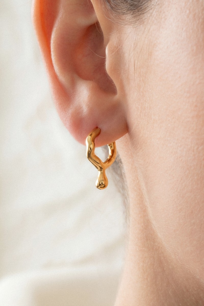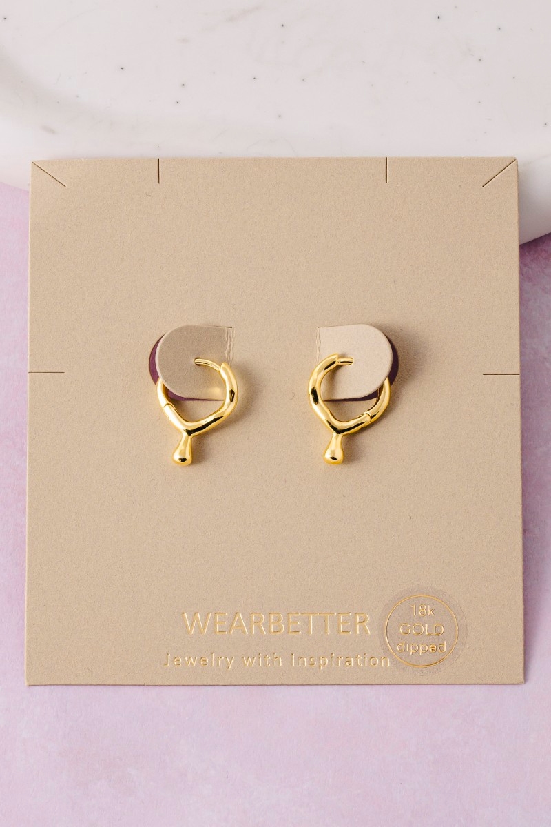 - This pair of hoop earrings introduces a stunning gold dipped tear drop hinge style. Explore a blend of classic charm and contemporary flair.