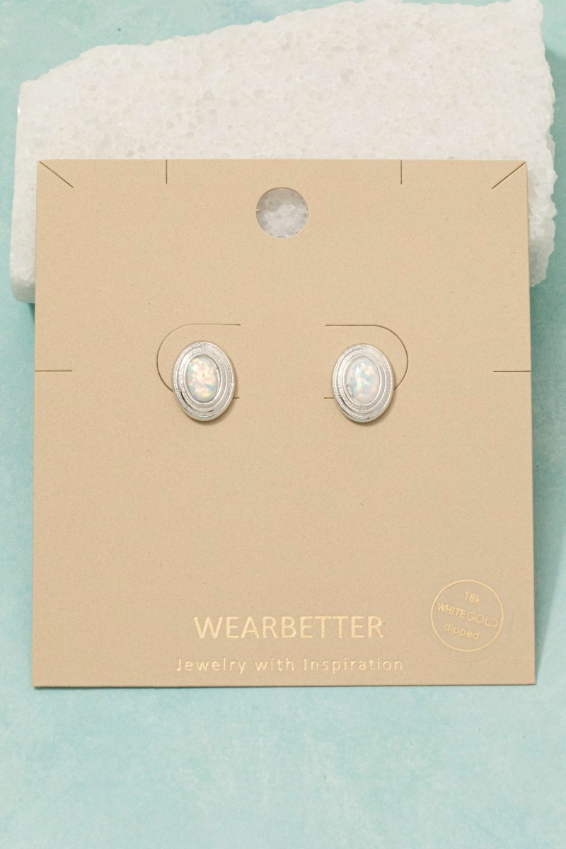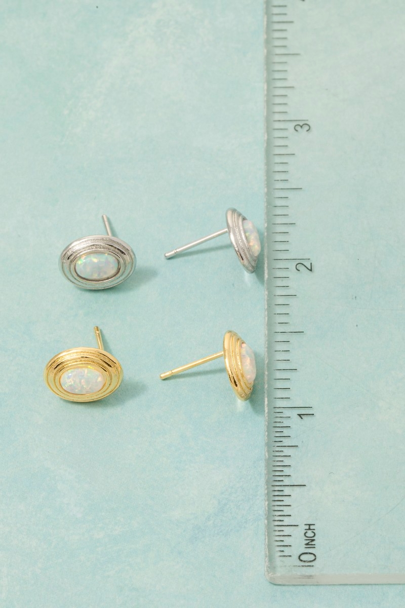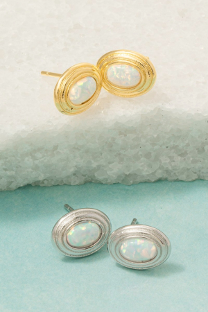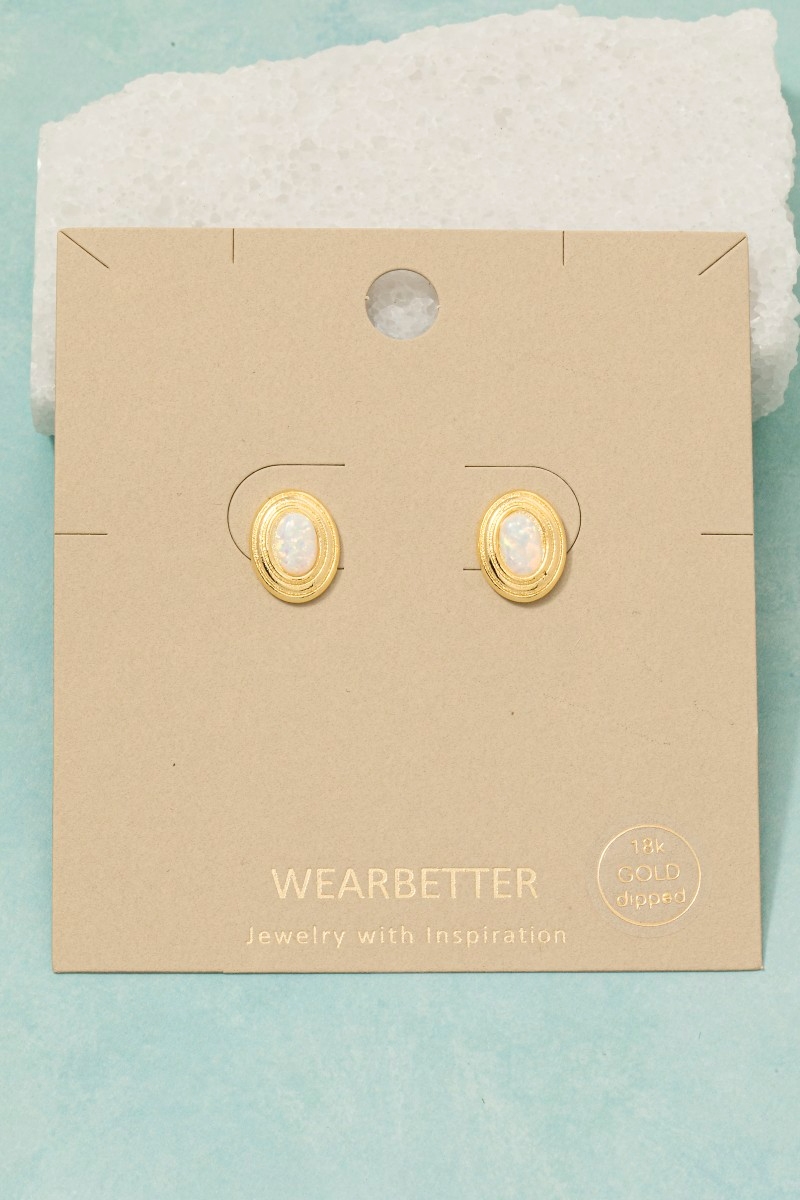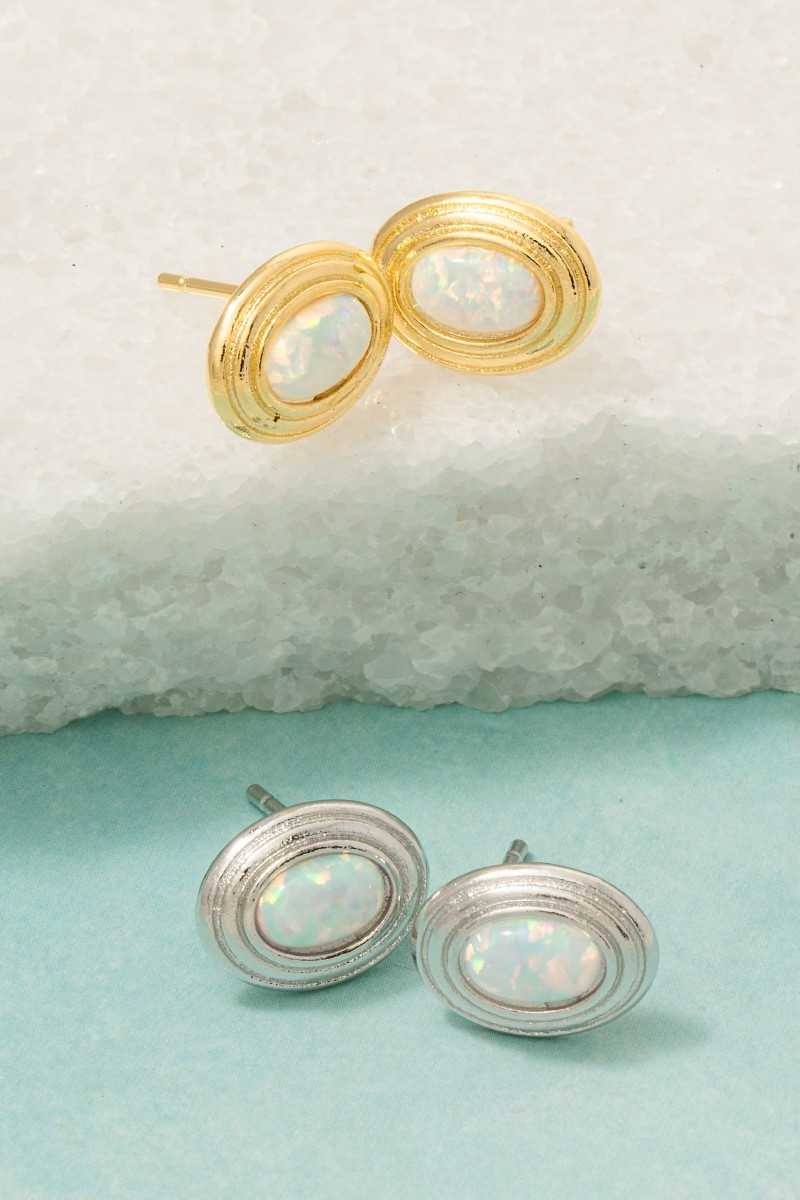 - This pair of stud earrings brings a unique gold dipped vintage oval opal style. Immerse yourself in the details of design, as this pair of stud earrings effortlessly becomes a conversation starter.