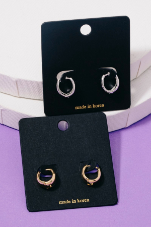 Two Tone Dome Shield Hoop Earrings