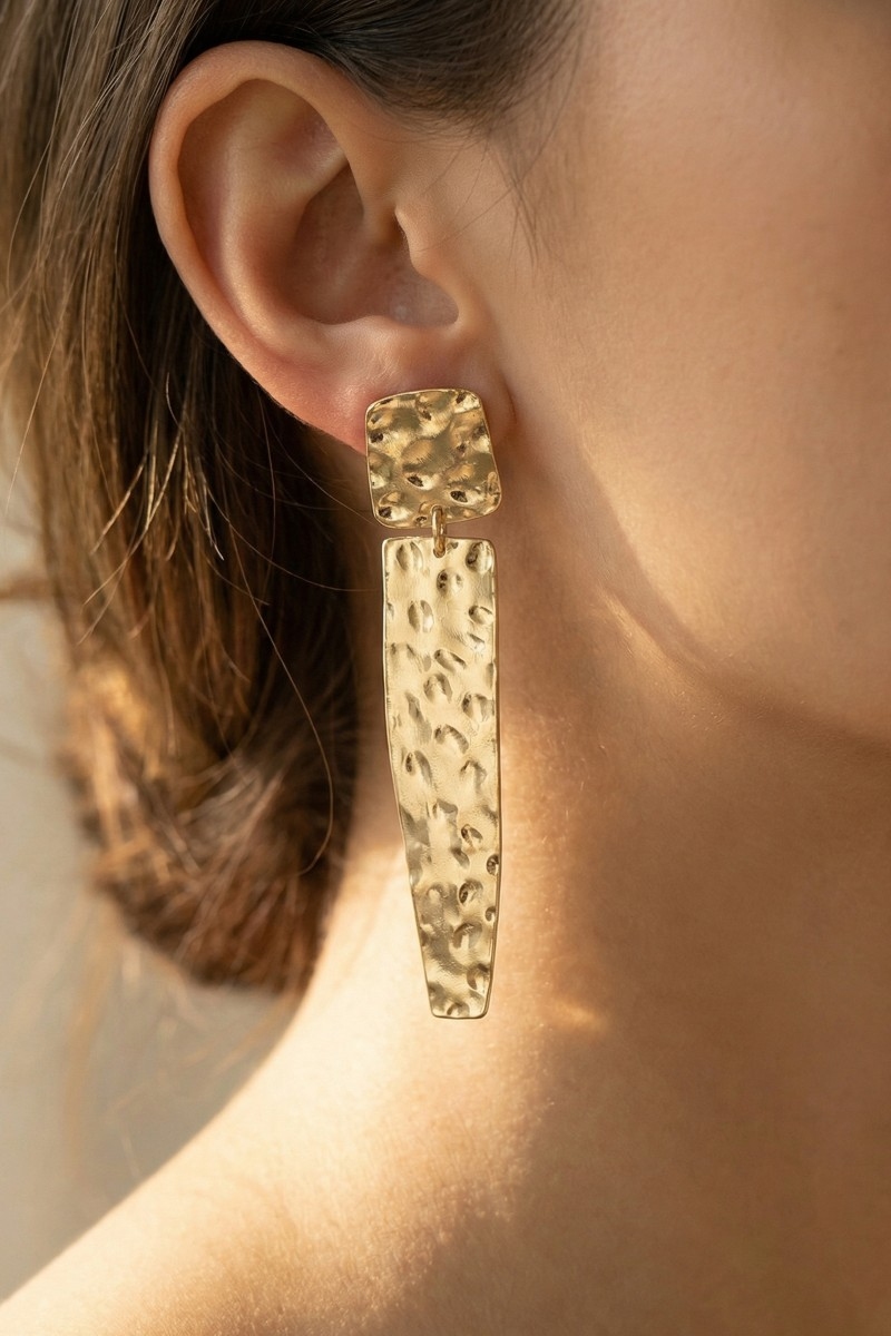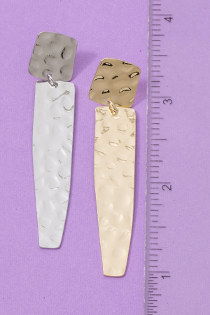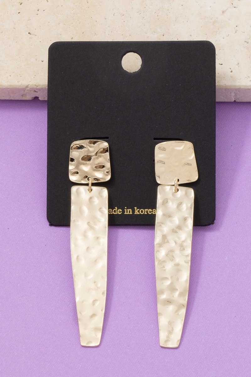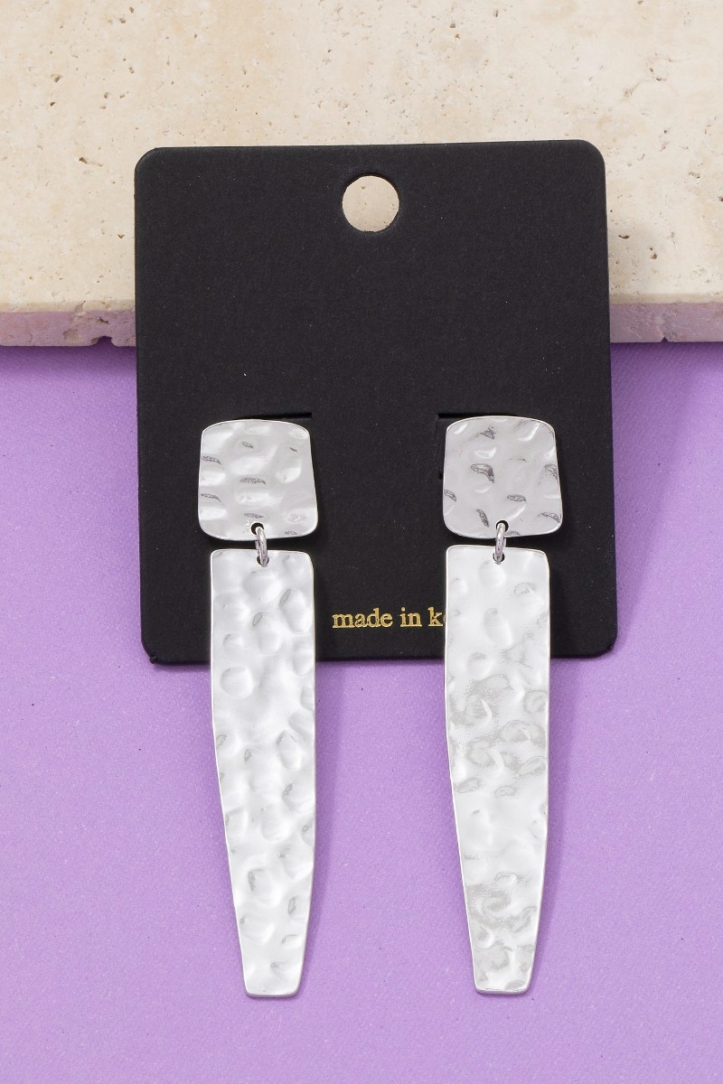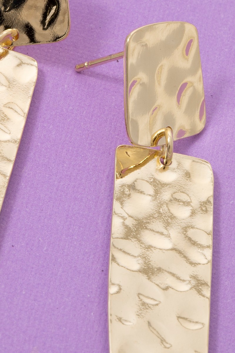 - This pair of dangle earrings displays a fashionable hammered long rectangle bar style. Celebrate individuality with this pair of dangle earrings that effortlessly expresses your unique sense of style.