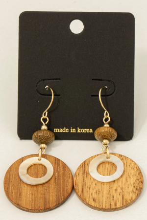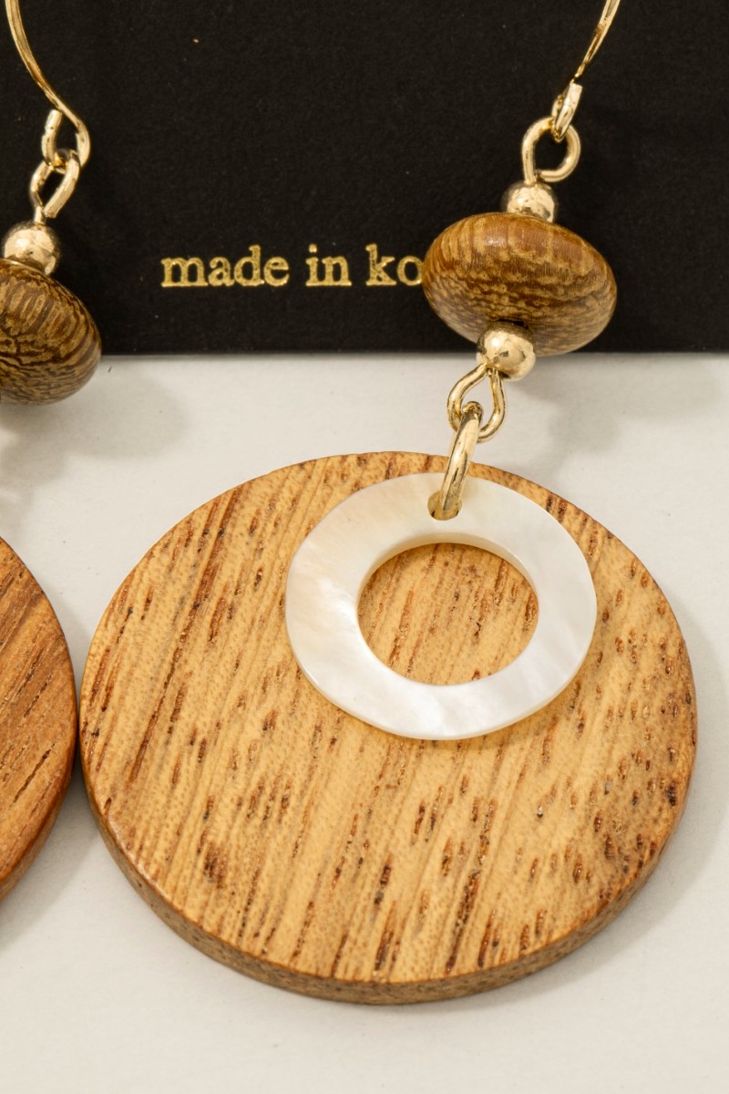 • This pair of drop earrings showcases a timeless layered circle wooden disc dangle style. Immerse yourself in the details of design, as this pair of drop earrings effortlessly becomes a conversation starter.