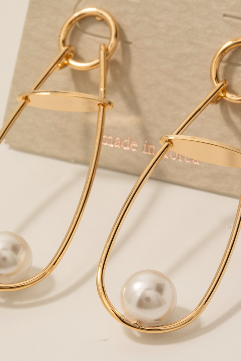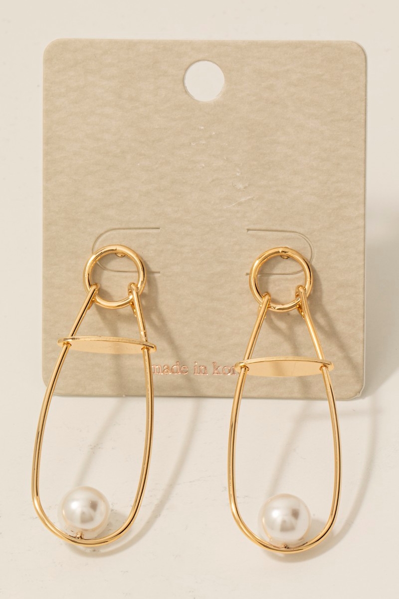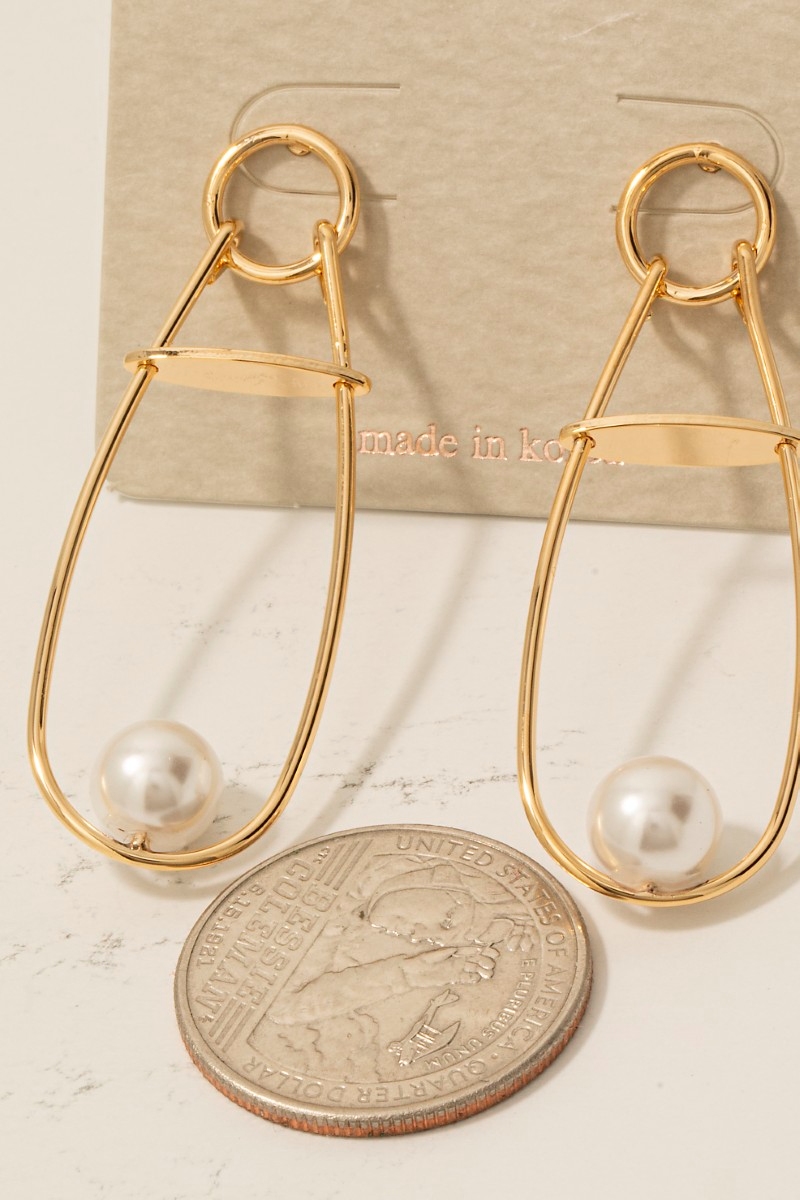 - This pair of drop earrings showcases a unique pearl bead long oval stud style. Indulge in the artistry of accessorizing with this unique piece.