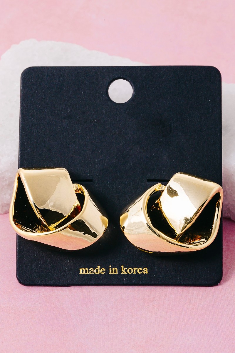 • This pair of earrings features a fashionable ribbon lace twist style. Immerse yourself in the details of design, as this pair of earrings effortlessly becomes a conversation starter.