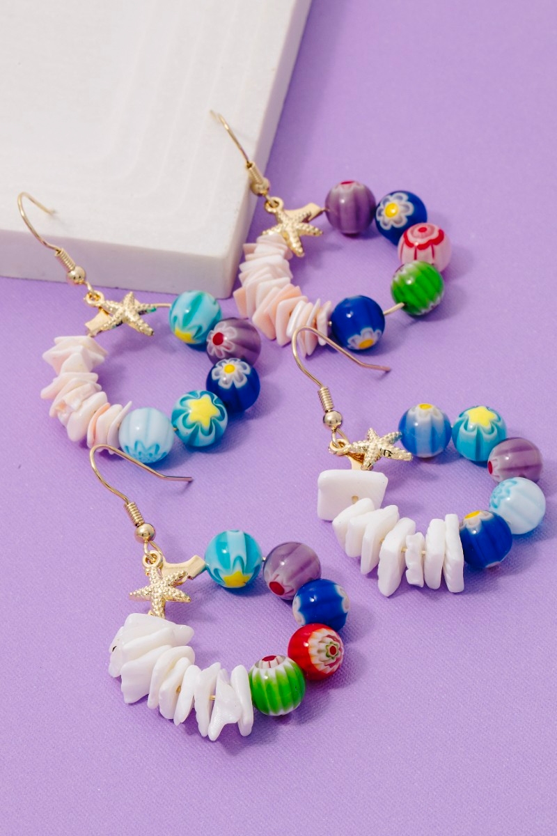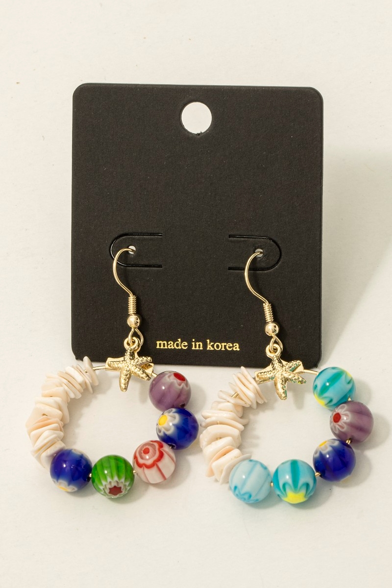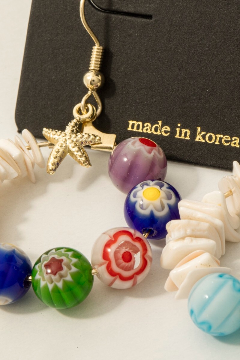 • This pair of drop earrings showcases a unique sea life shell glass bead style. Explore a refined sense of style with this pair of drop earrings, seamlessly elevating the chic factor of your look.