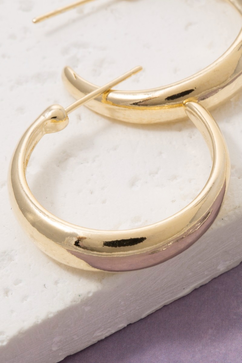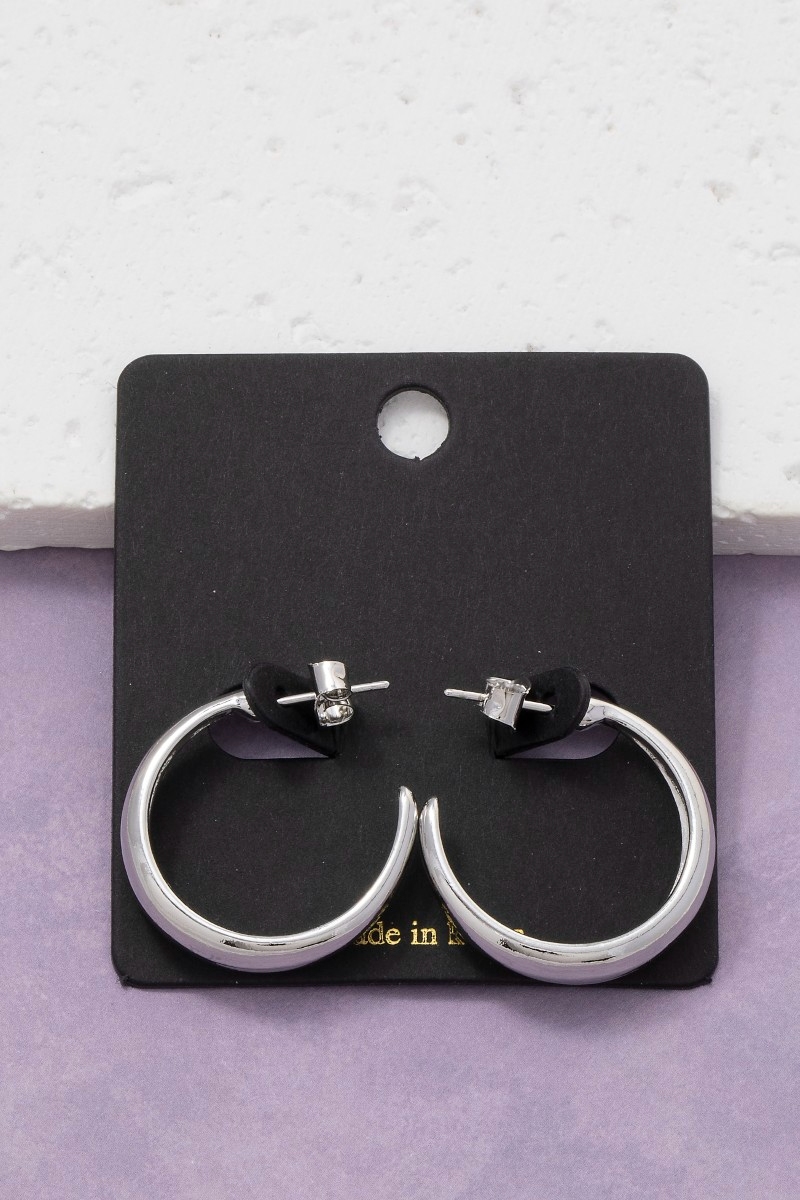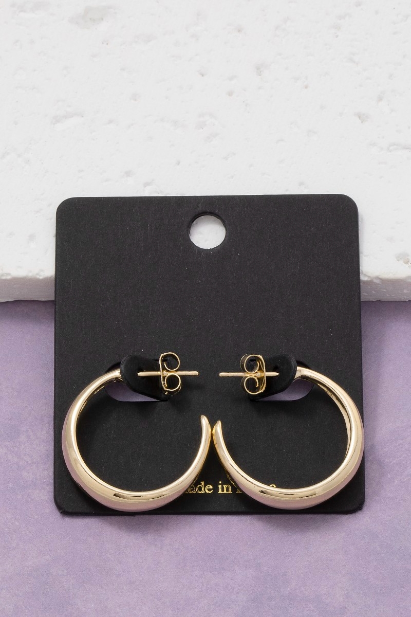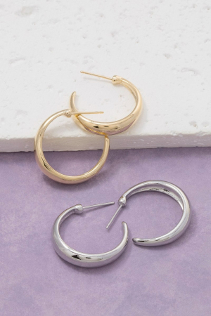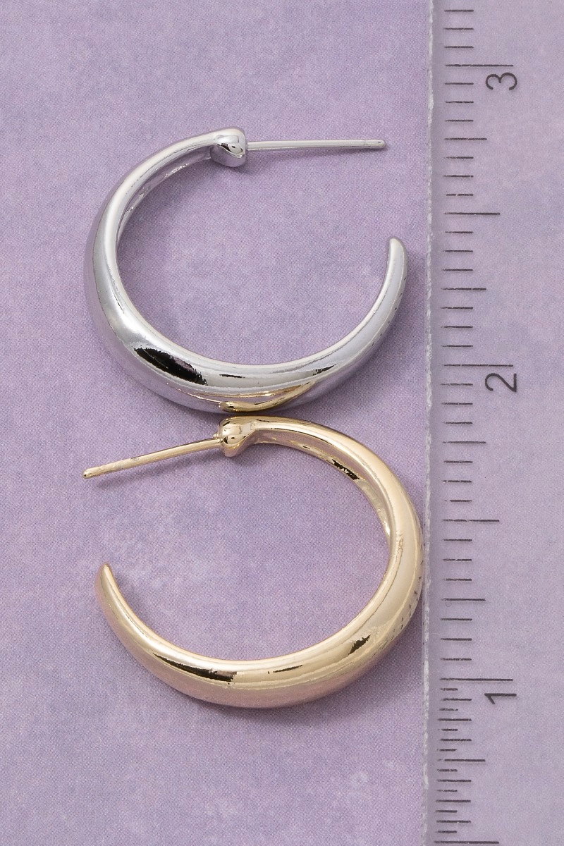 - This pair of hoop earrings displays a vibrant simple curve crescent style. Experience a subtle blend of modernity and classic charm as this pair of hoop earrings effortlessly adorns your ensemble.