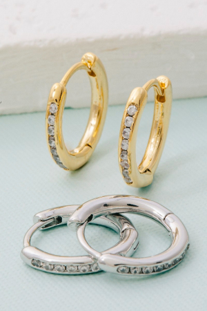 - This pair of hoop earrings showcases a unique simple cubic zirconia station stud hinge style. Delight in the intricate details that make this pair of hoop earrings an essential element in expressing your fashion identity.