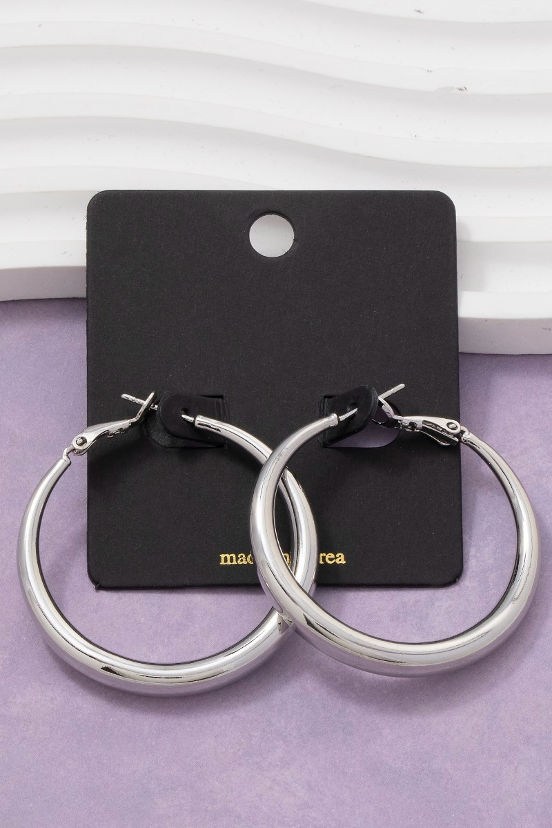 • This pair of hoop earrings displays a vibrant simple thin graduated latch style. Celebrate the art of accessorizing with this piece that effortlessly encapsulates modern trends.