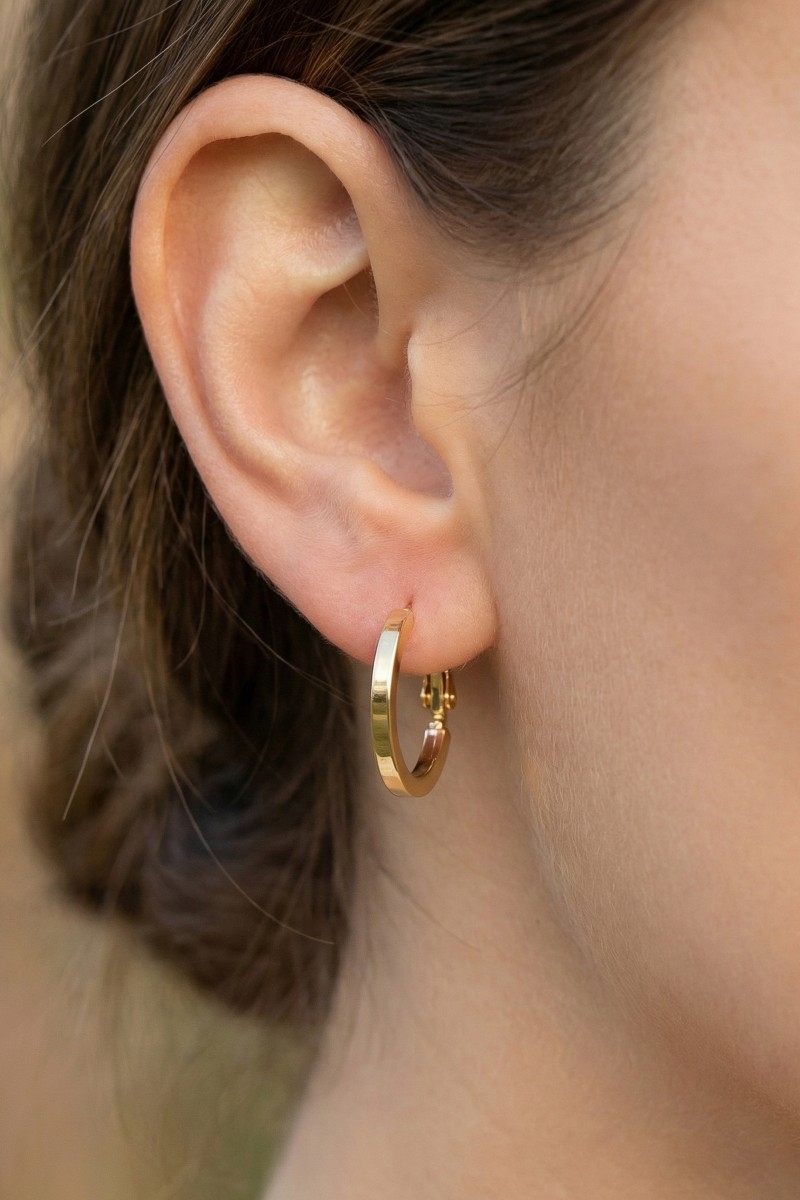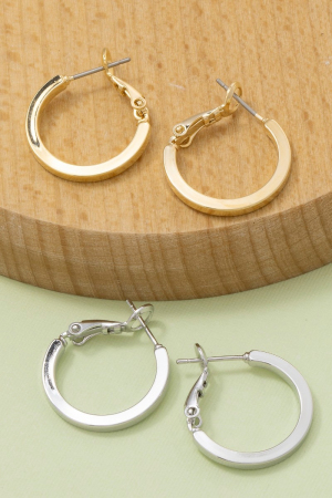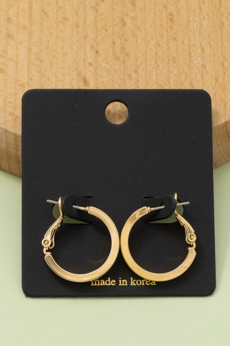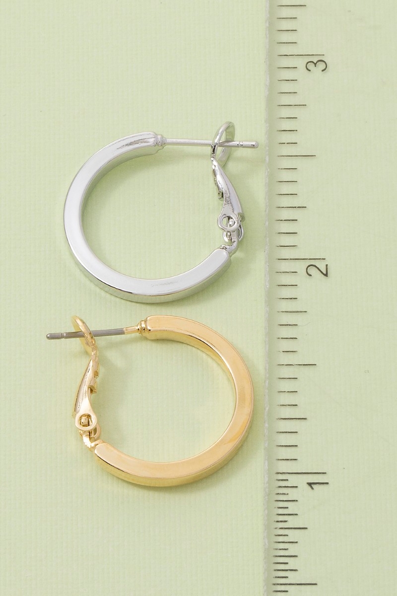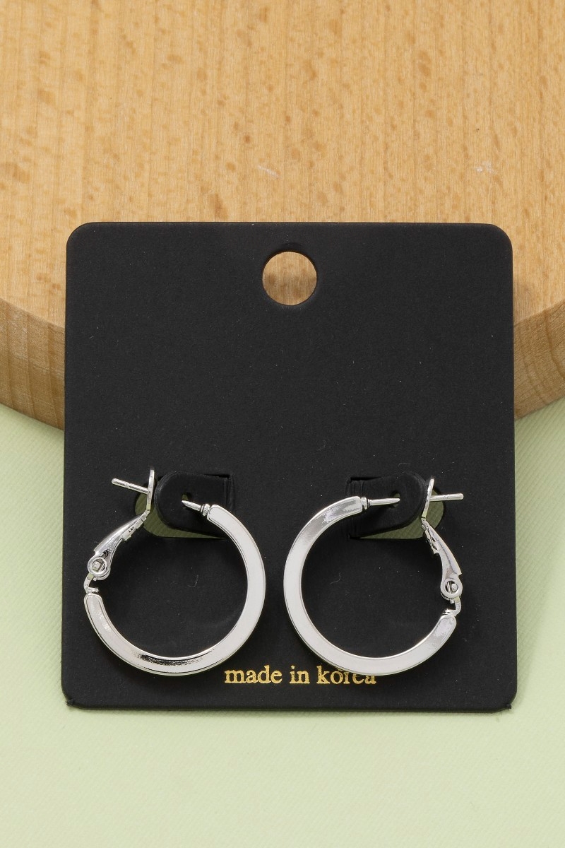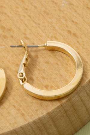 • This pair of hoop earrings displays a fashionable small flat sided latch style. Experience the joy of accessorizing with this piece that effortlessly combines versatility and charm.