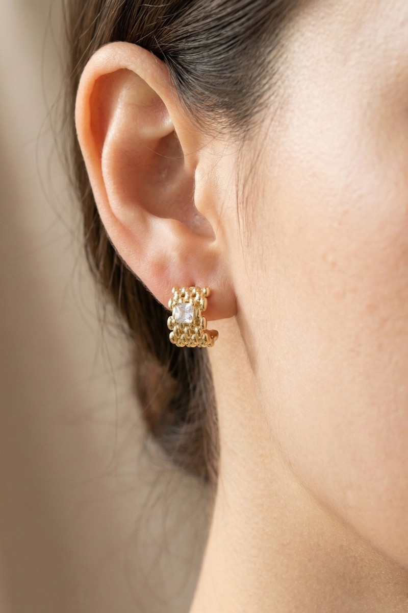 • This pair of hoop earrings showcases a timeless square cubic zirconia wide solid mesh style. Discover the perfect balance of functionality and fashion.