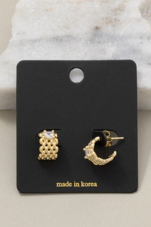 Moon Ear Cuff And Star Stud Cz Earrings Set