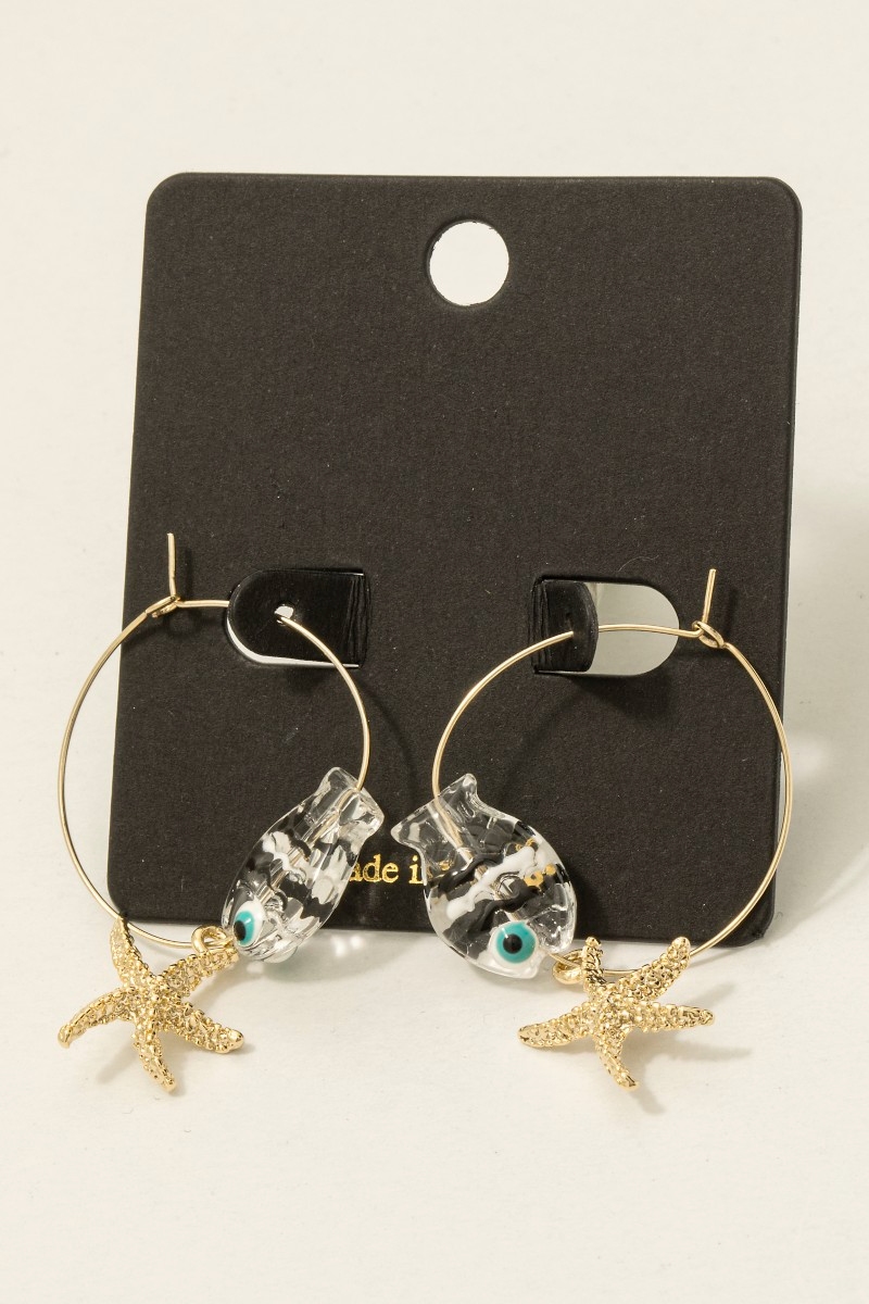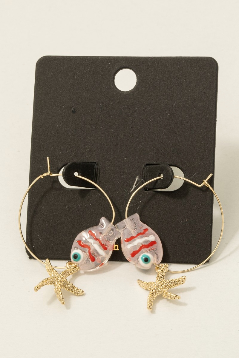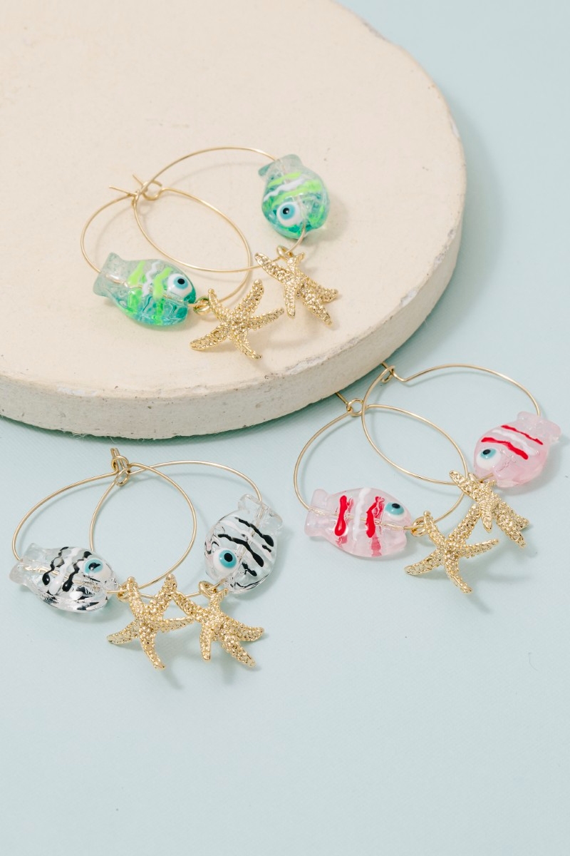 - This pair of hoop earrings brings a stunning starfish clear fish style. Delight in the intricate details that make this pair of hoop earrings an essential element in expressing your fashion identity.
