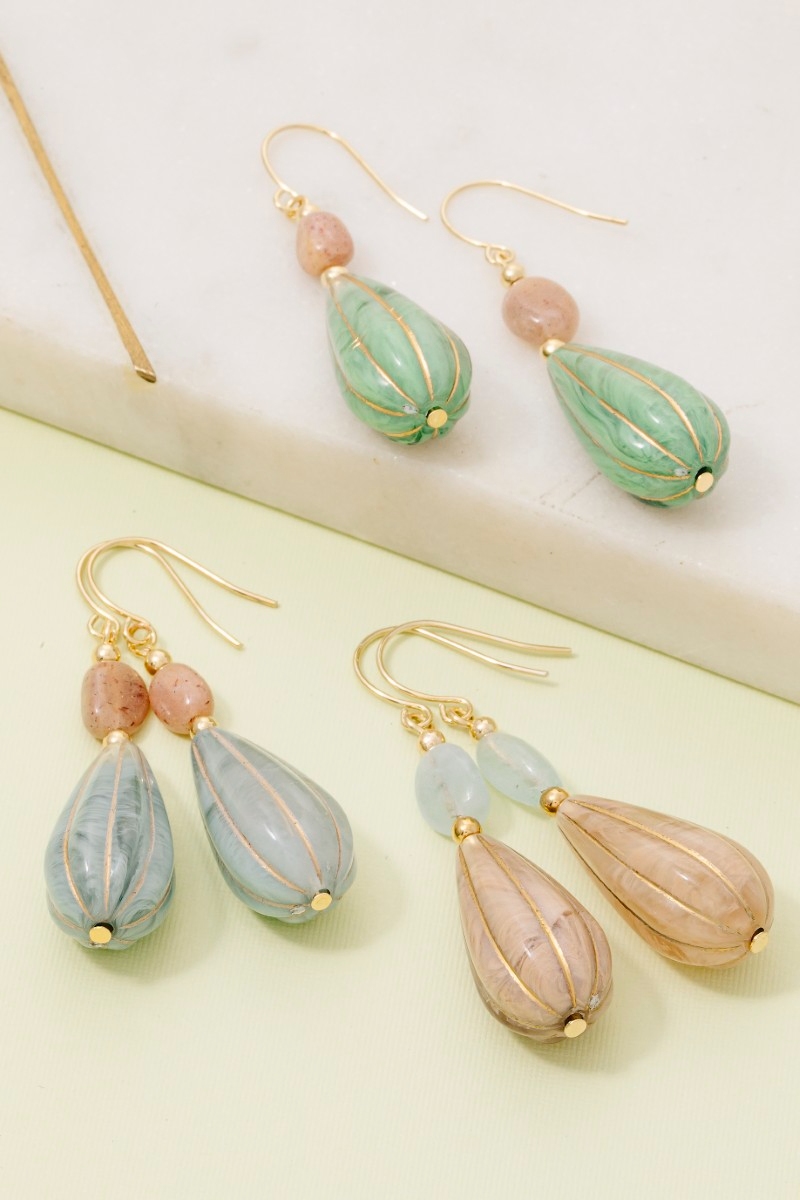 • This pair of drop earrings brings a unique teardrop gemstone dangle style. Explore a blend of classic charm and contemporary flair.