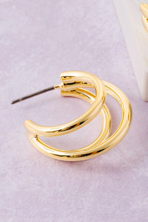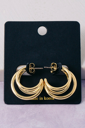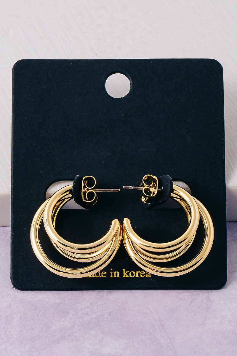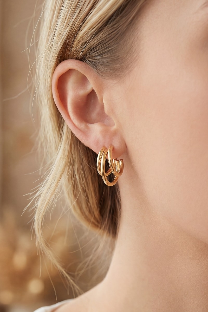 • This pair of hoop earrings features a fashionable three layered style. Experience a subtle blend of modernity and classic charm as this pair of hoop earrings effortlessly adorns your ensemble.