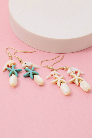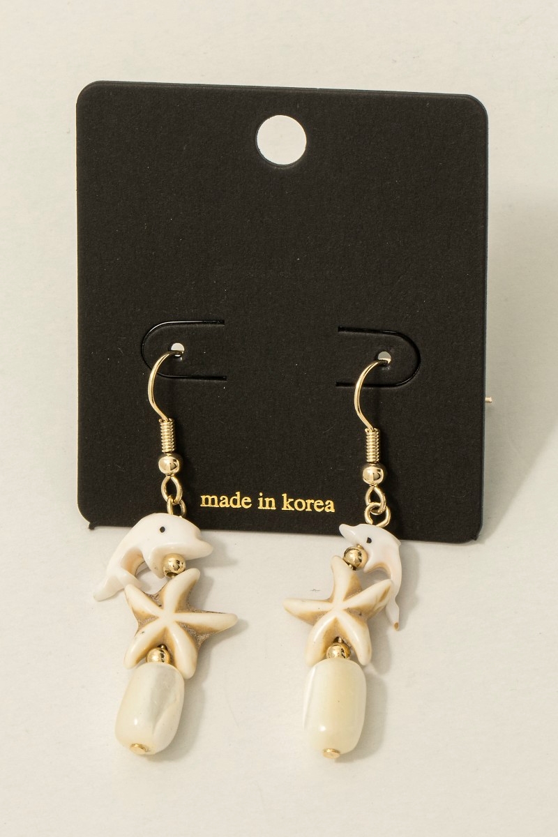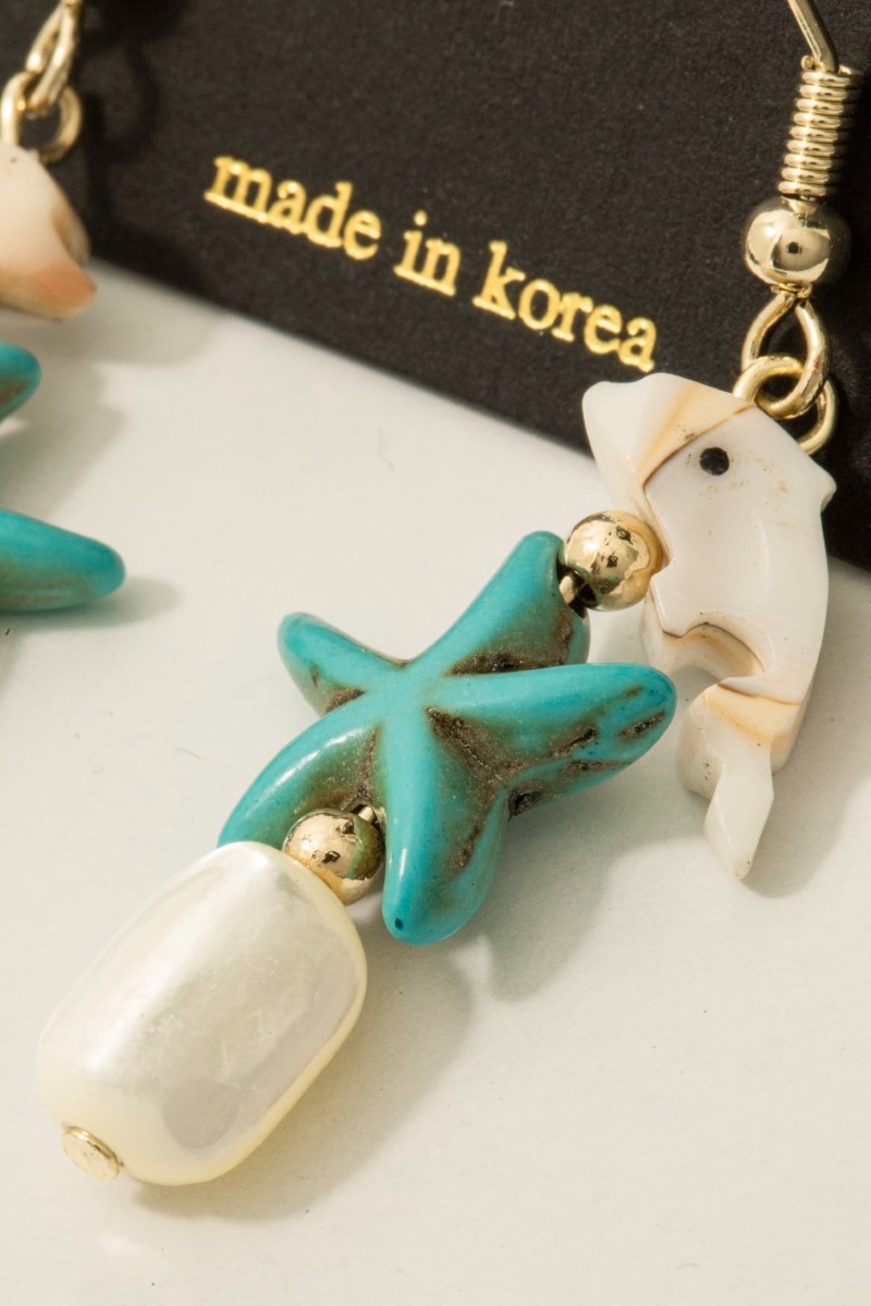 - This pair of drop earrings brings a unique tiered gemstone dolphin starfish style. Immerse yourself in fashion finesse with this statement pair of drop earrings.