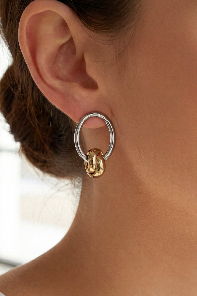 - This pair of drop earrings features a fashionable two tone circle cutout style. Immerse yourself in the world of understated glamour as this pair of drop earrings effortlessly exudes timeless appeal.