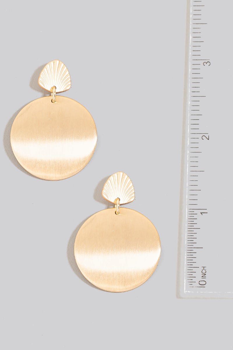 - This pair of dangle earrings displays a vibrant brushed metallic disc style. Redefine your look effortlessly with this standout, on-trend piece.