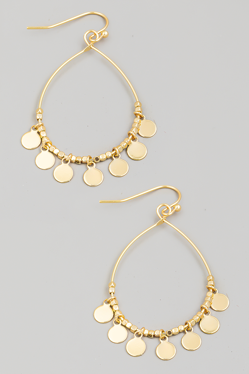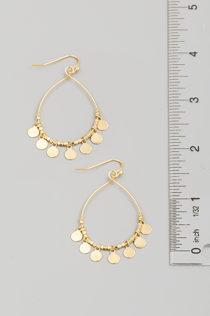 • This pair of drop earrings displays a fashionable coin fringe tear style. Experience a burst of creativity in accessorizing as this piece effortlessly sets the tone for your unique style.