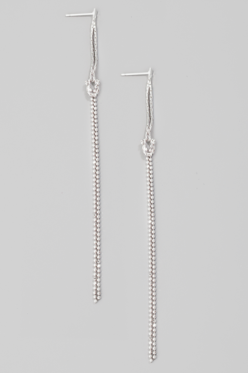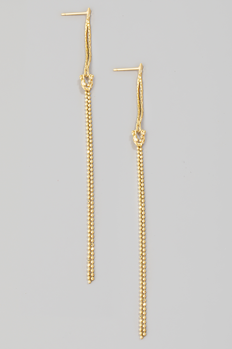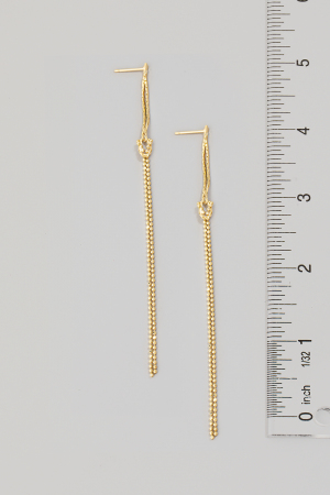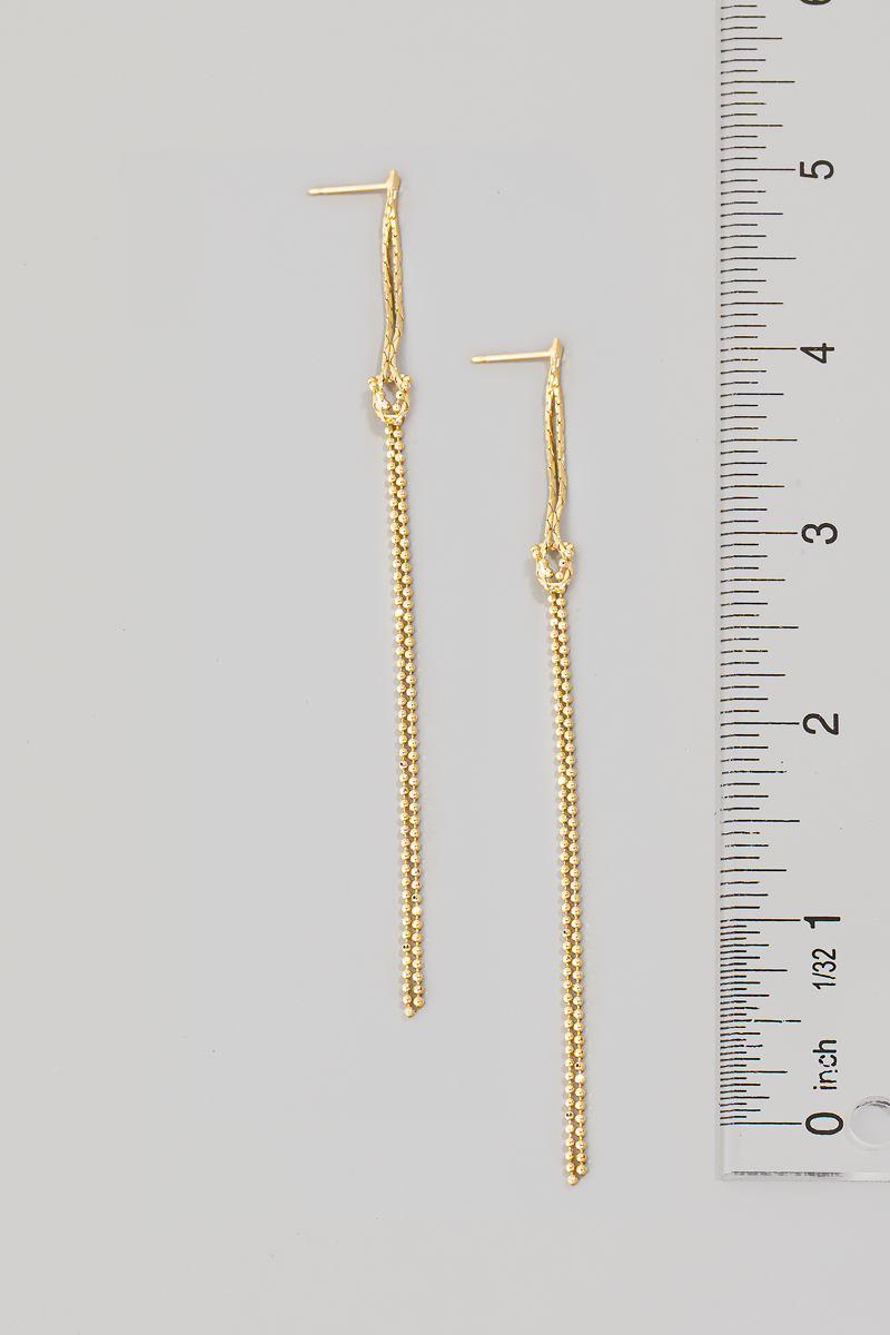 • This pair of dangle earrings introduces a stunning dainty chain style. Celebrate individuality with this accessory that effortlessly expresses your unique sense of style.