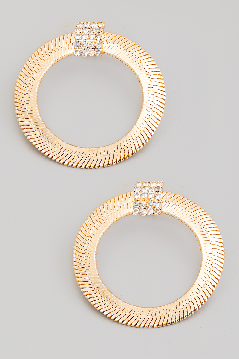 • This pair of drop earrings introduces a stunning flat solid snake chain hoop style. Discover the perfect balance of subtlety and flair as this accessory effortlessly completes your look.