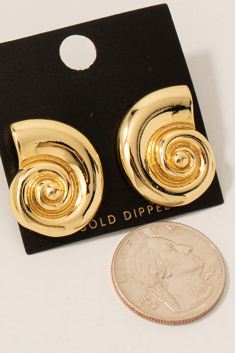 - This pair of stud earrings showcases a timeless gold dipped snail shell style. Celebrate the art of accessorizing with this piece that effortlessly encapsulates modern trends.