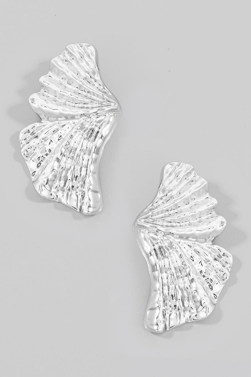 - This pair of stud earrings features a fashionable metallic half geometric leaf style. Step into a world of refined taste as this pair of stud earrings effortlessly refines the details of your outfit.