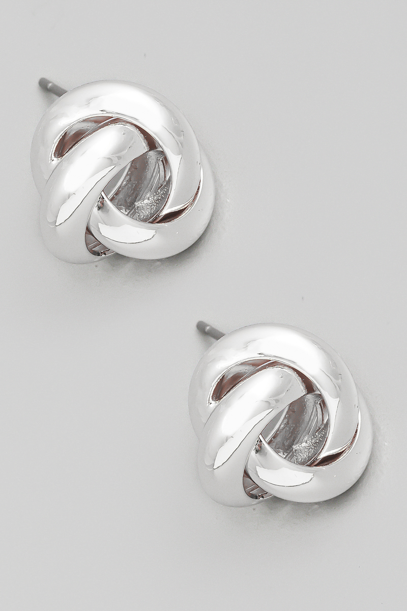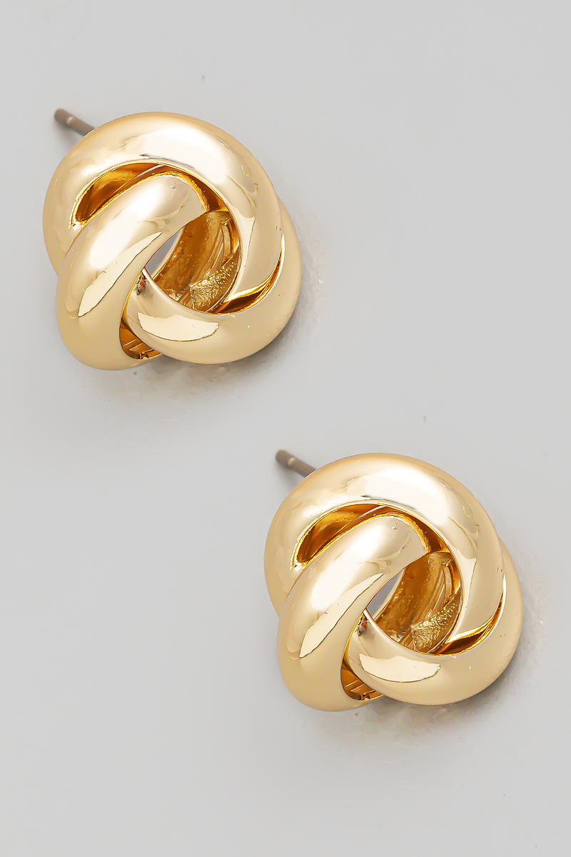 - This pair of stud earrings features a fashionable metallic knot style. Immerse yourself in the details of design, as this accessory effortlessly becomes a conversation starter.