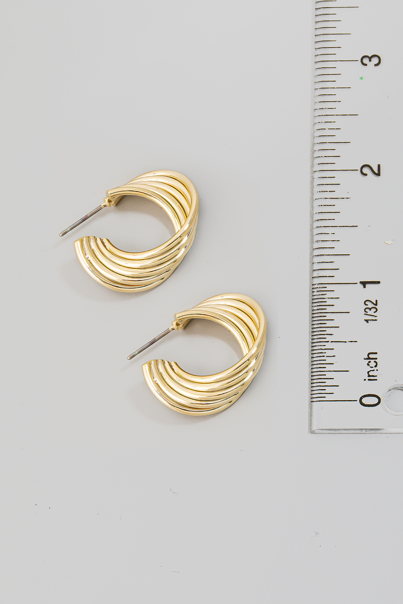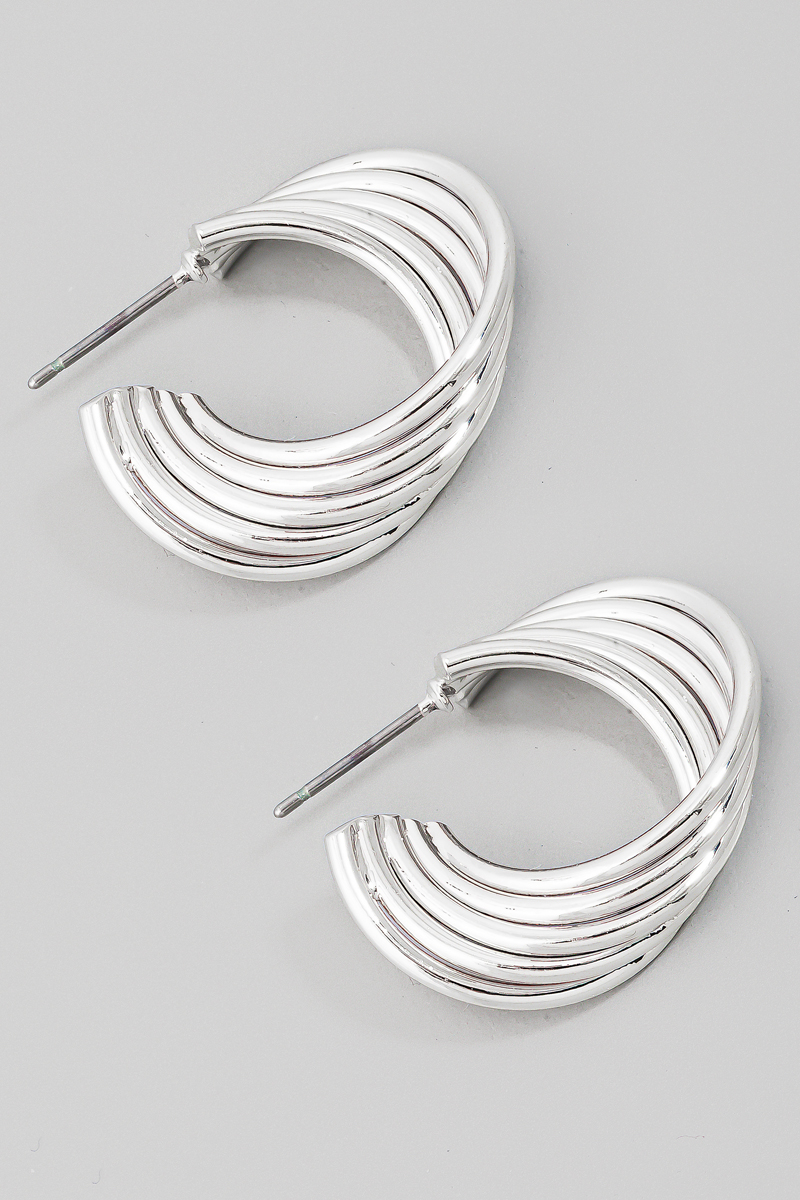 • This pair of hoop earrings adds a modern solid layered metallic style. Explore a blend of classic charm and contemporary flair.