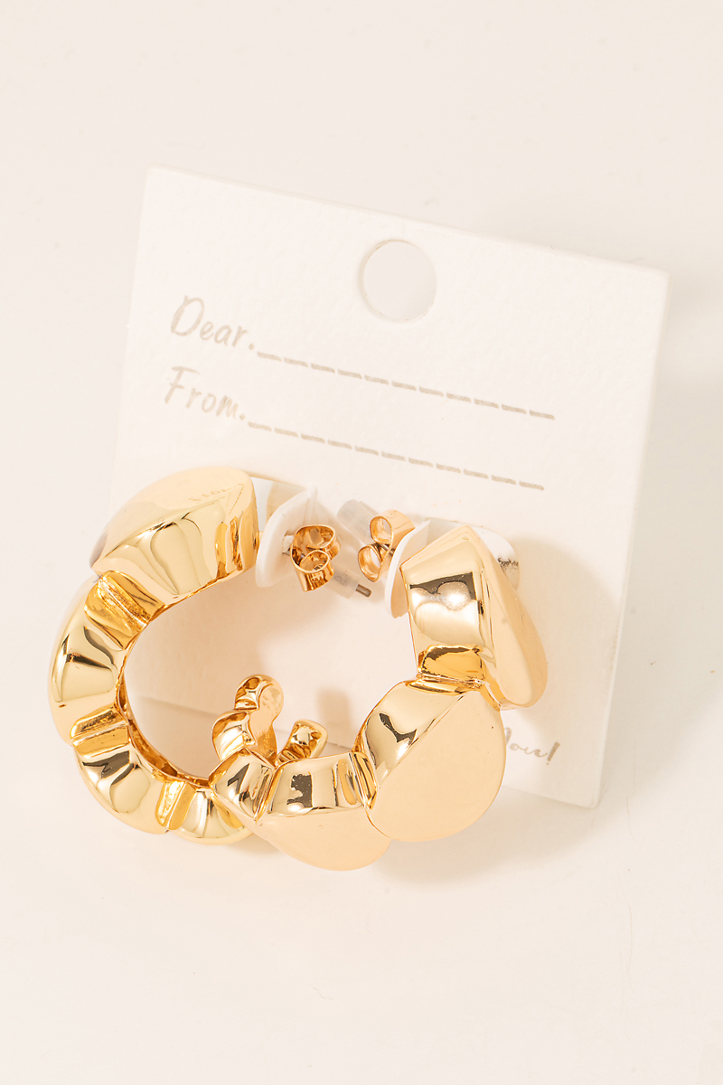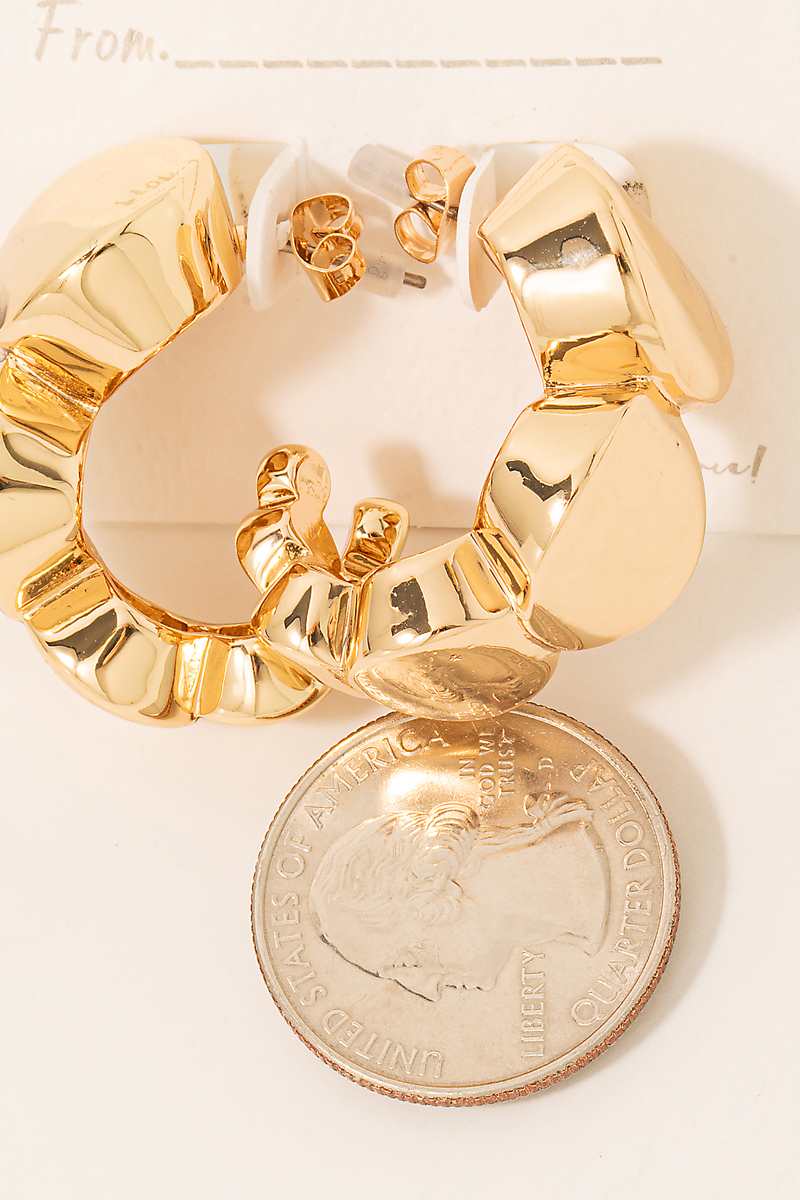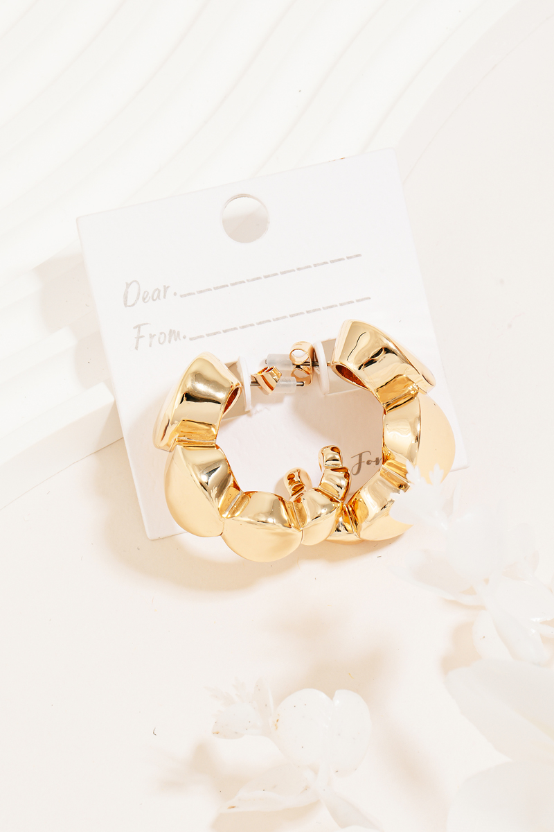 - This pair of hoop earrings showcases a unique solid metallic oval link style. Savor the allure of detailed craftsmanship in this exquisite accessory.