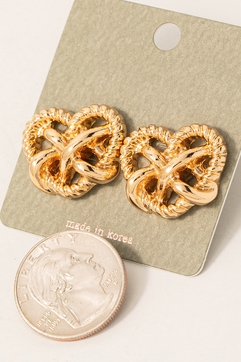 - This pair of stud earrings brings a stunning textured heart knot style. Elevate your ensemble with this pair of stud earrings that effortlessly captures the essence of refined fashion.