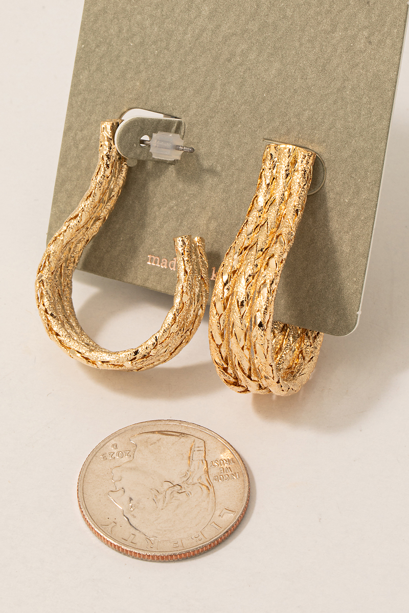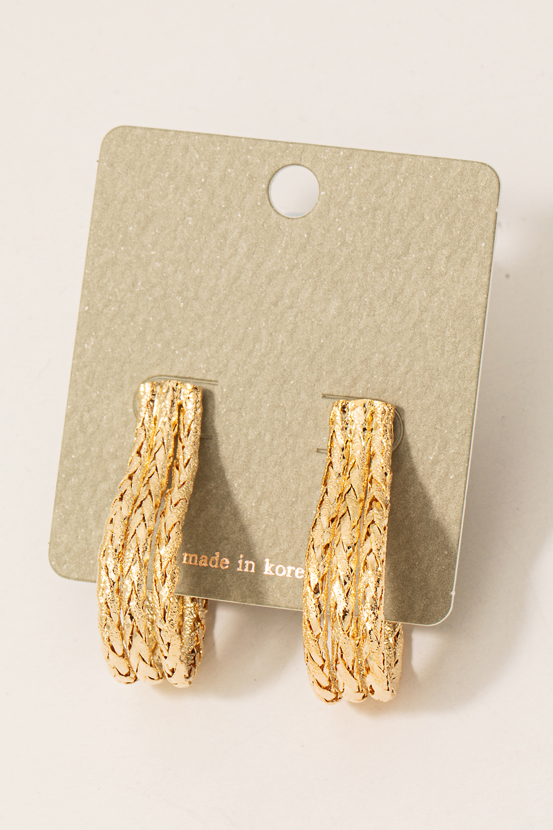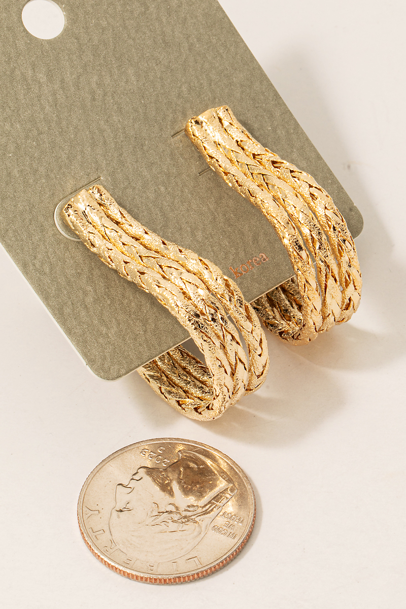 - This pair of hoop earrings adds a modern triple layered rope textured j style. Experience refined sophistication with this understated yet stylish piece.