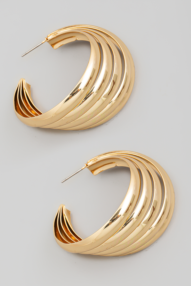 Gold Dipped Flat Rectangle Latch Hoop Earrings