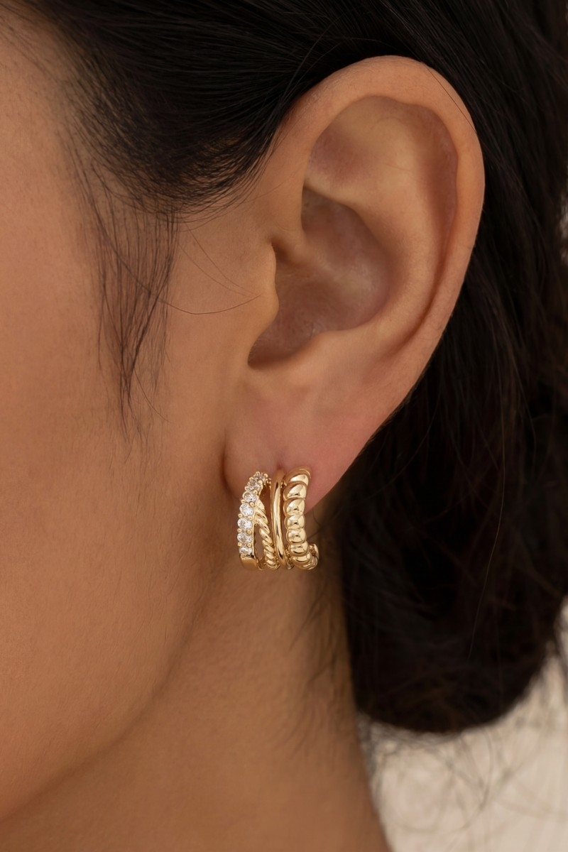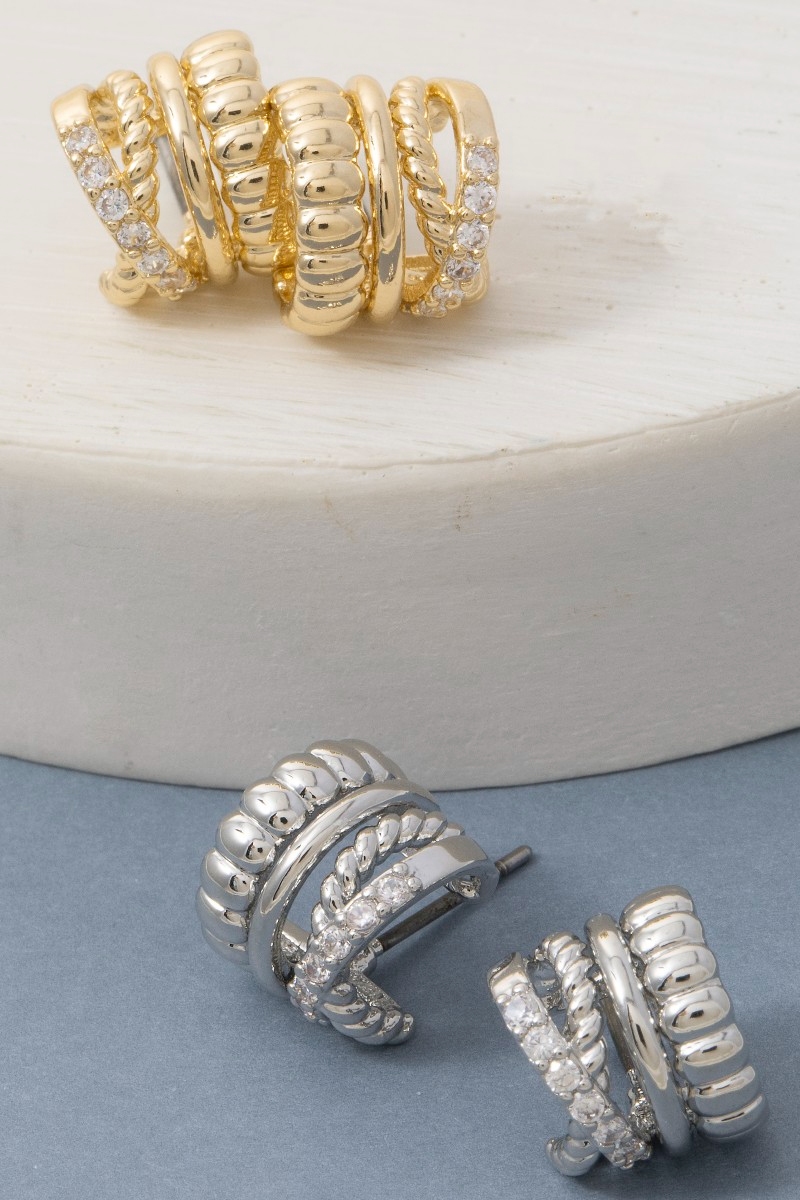- This pair of hoop earrings introduces a stunning mini four row style. Immerse yourself in the details of design, as this pair of hoop earrings effortlessly becomes a conversation starter.