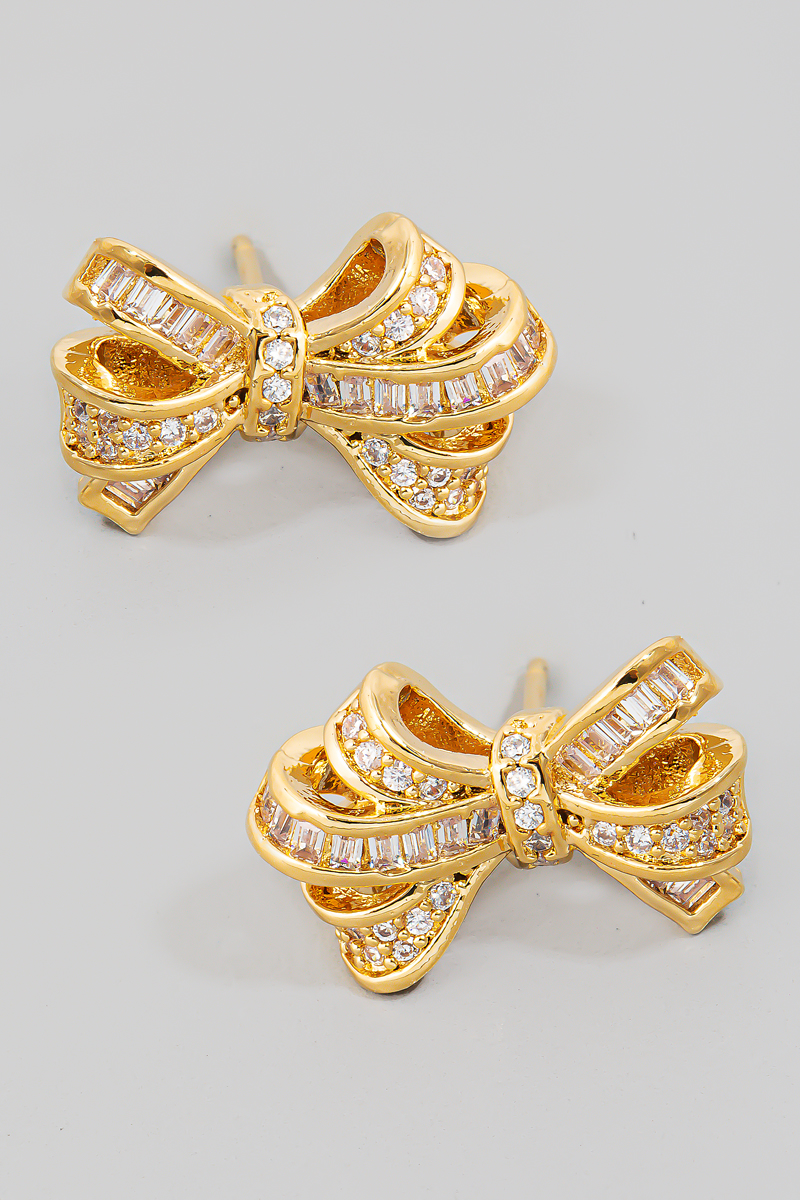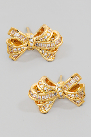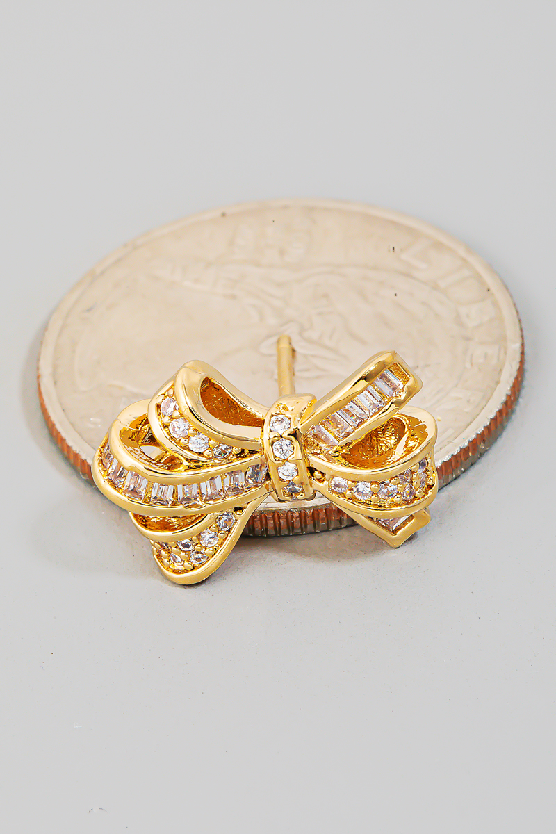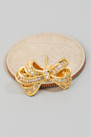 - This pair of stud earrings brings a stunning mini layered ribbon bow style. Embark on a journey of sartorial refinement as this accessory effortlessly complements your fashion sense.