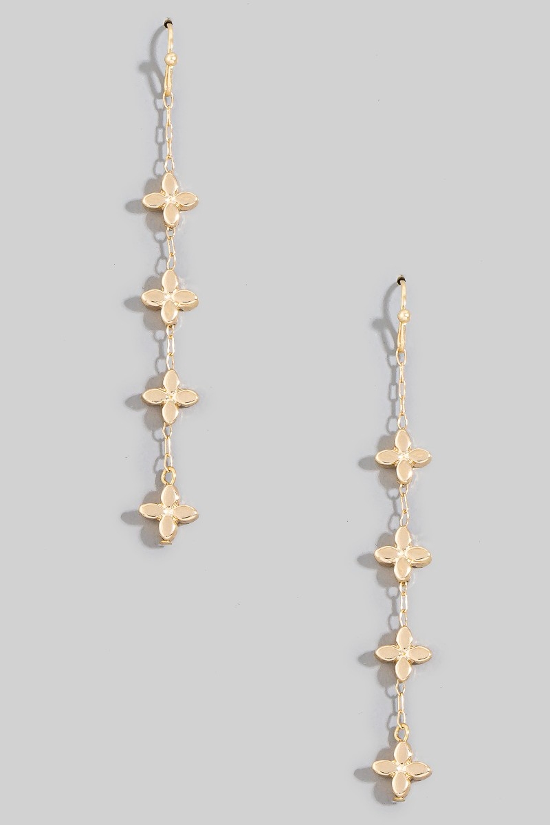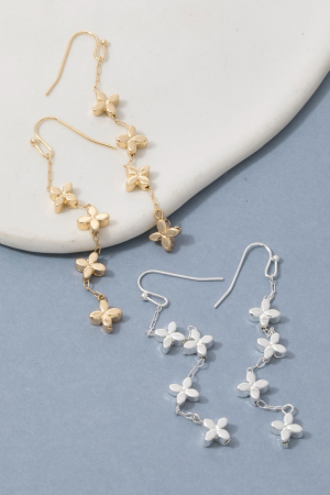 - This pair of dangle earrings introduces a stunning mini metallic flowers chain style. Delight in the nuanced details that make this pair of dangle earrings a testament to fine design and impeccable taste.