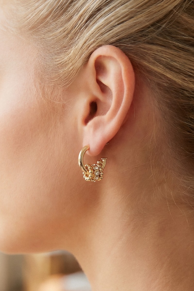 • This pair of hoop earrings brings a unique mini ring charms style. Indulge in the allure of exquisite craftsmanship as this pair of hoop earrings effortlessly adds a touch of luxury to your attire.