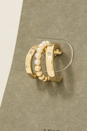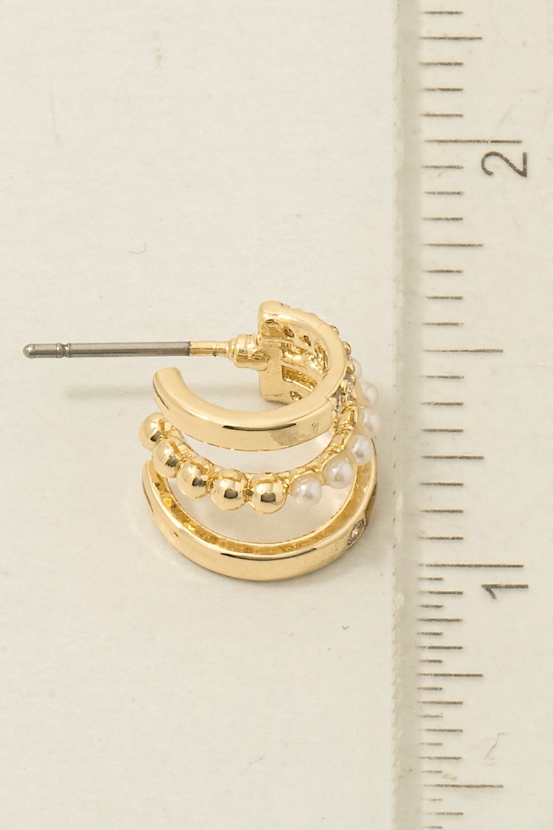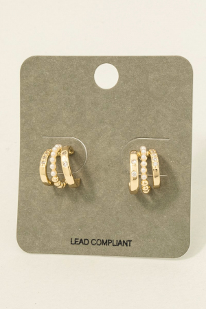 • This pair of hoop earrings introduces a unique mini three line pearl bead style. Elevate your ensemble with this chic, timeless pair of hoop earrings.