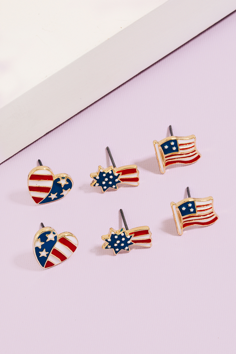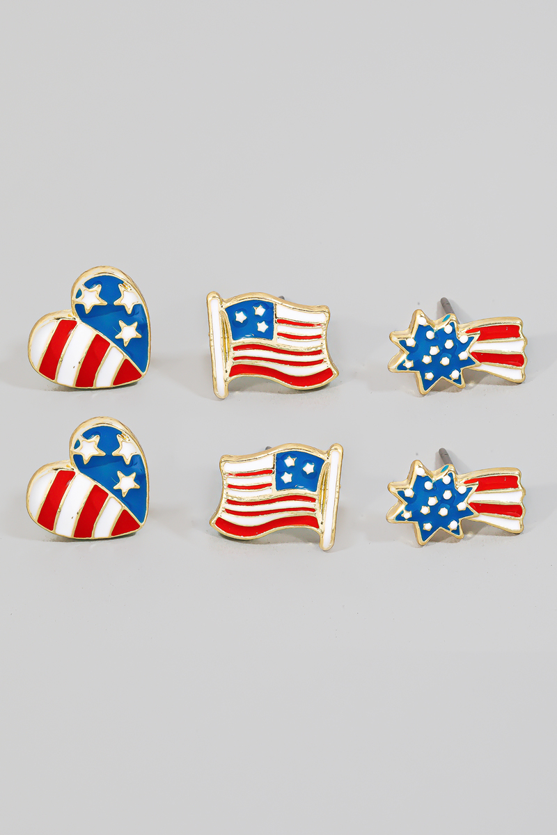 - This pair of stud earrings features a fashionable mixed american theme epoxy style. Celebrate individual style with this versatile, eye-catching addition.