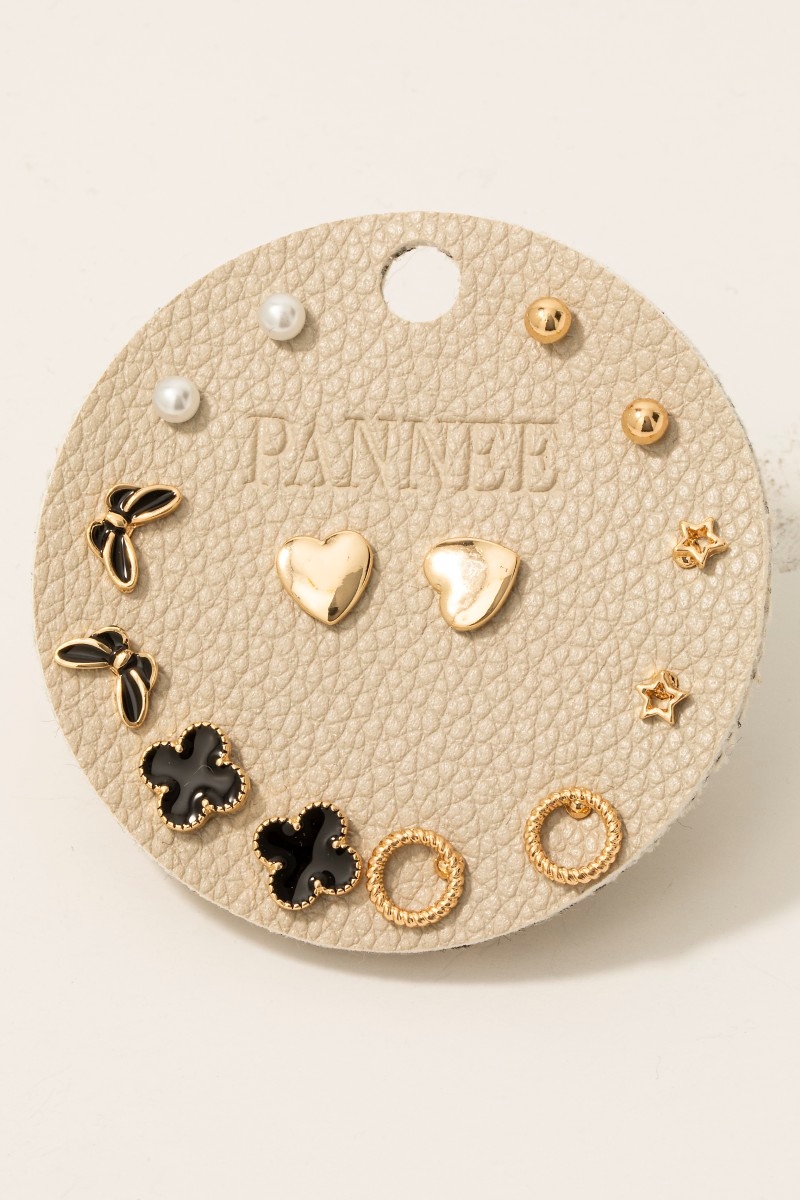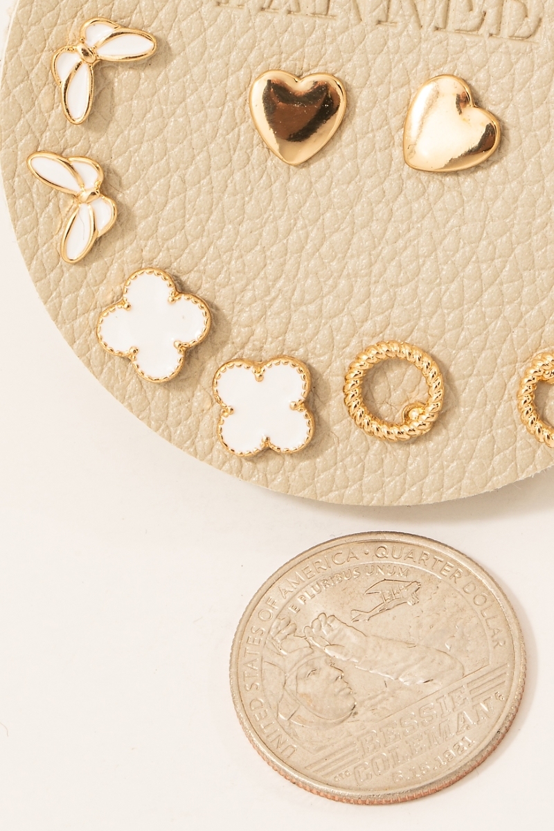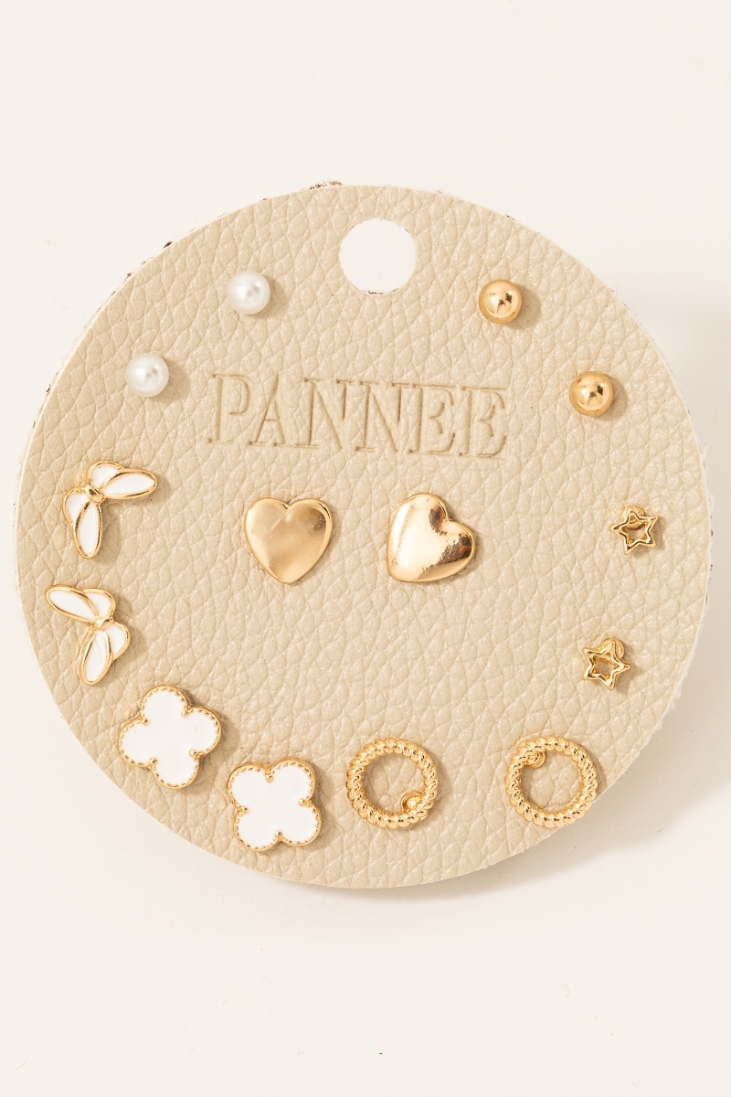 - This pair of stud earrings adds a modern mixed heart butterfly and pearl set style. Step into a world of refined taste as this pair of stud earrings effortlessly refines the details of your outfit.