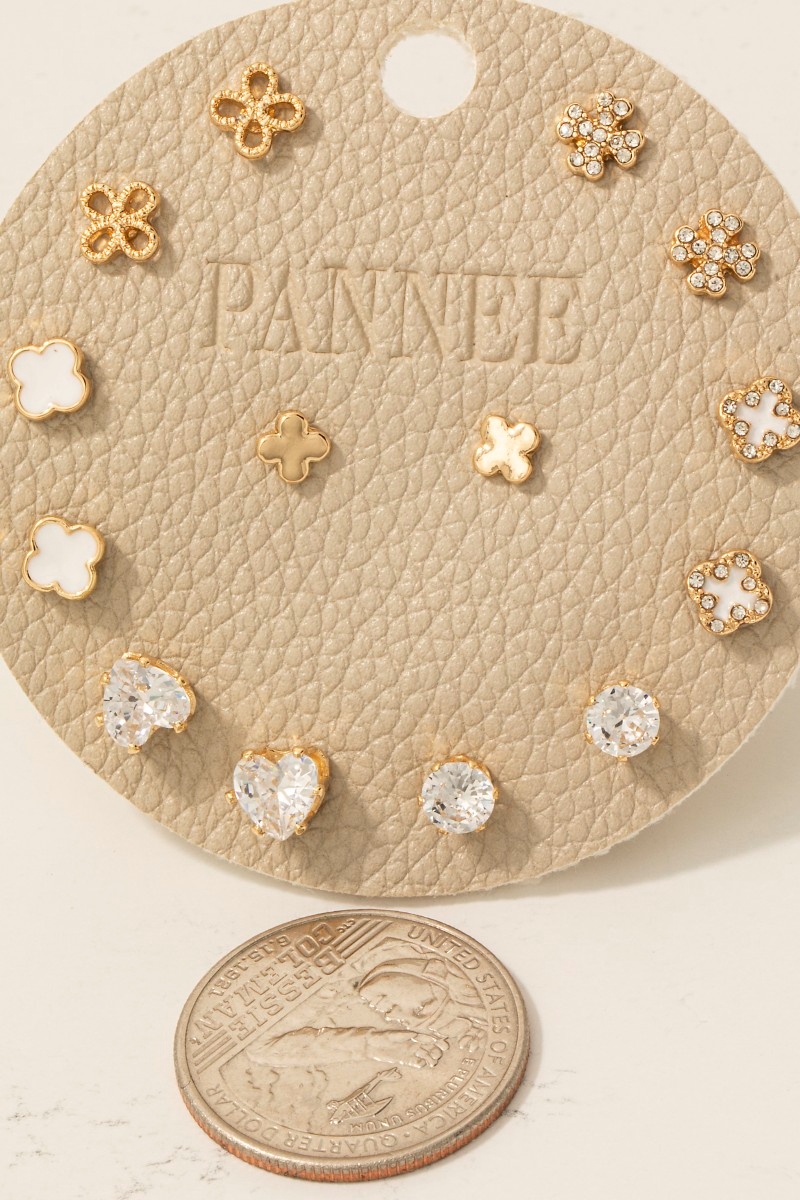 - This pair of stud earrings introduces a stunning mixed pave and enamel clover set style. Delight in the nuanced details that make this pair of stud earrings a testament to fine design and impeccable taste.