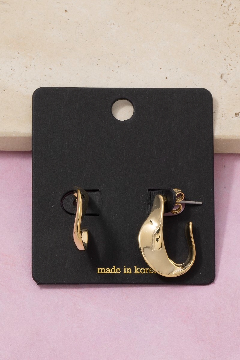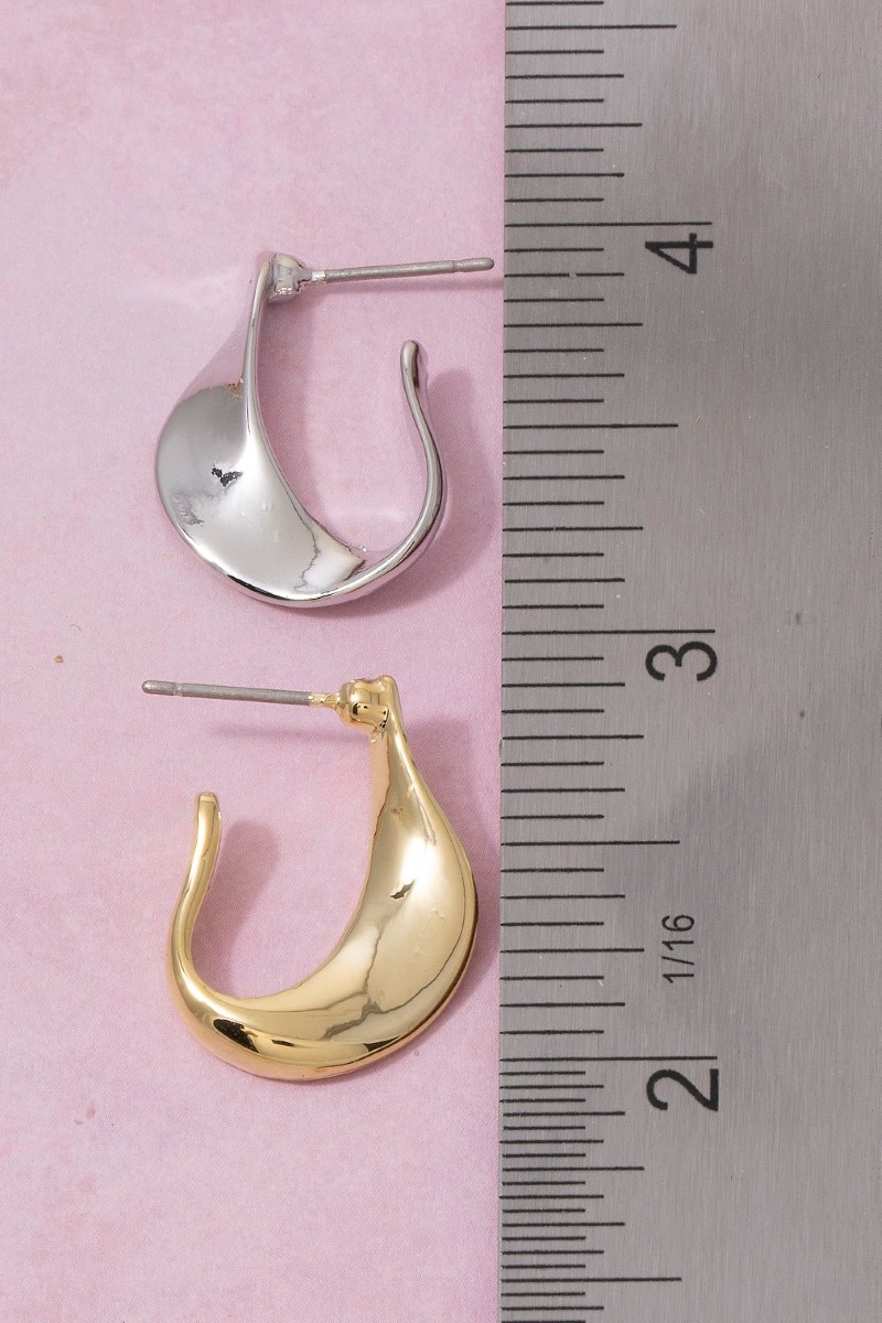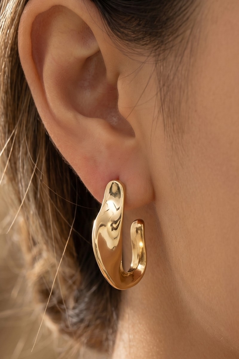 - This pair of hoop earrings displays a fashionable molten wave open style. Experience a burst of creativity in accessorizing as this piece effortlessly sets the tone for your unique style.
