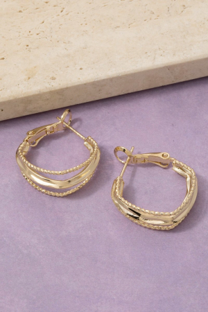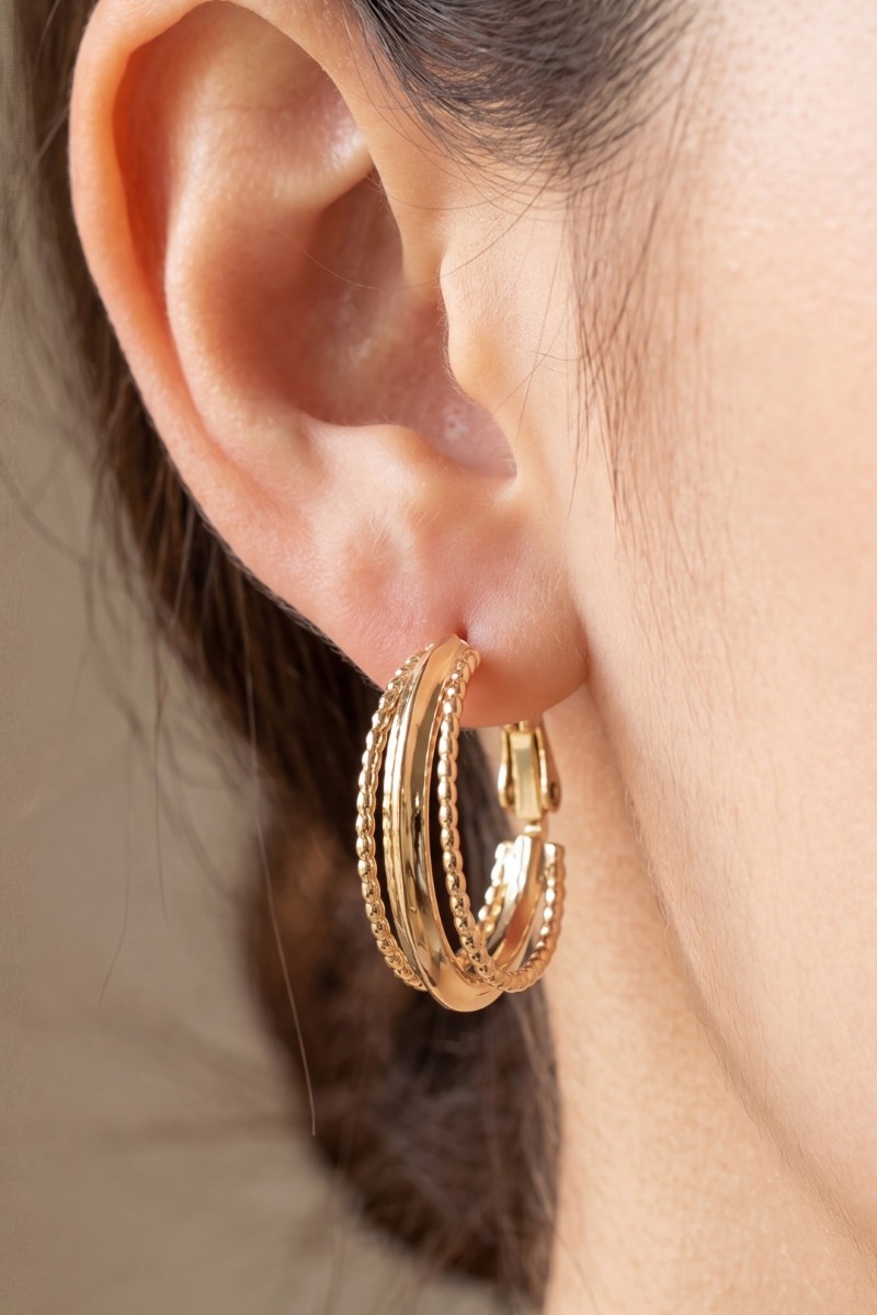 Gold Plated Two Tone Layered Oval Hoop Earrings