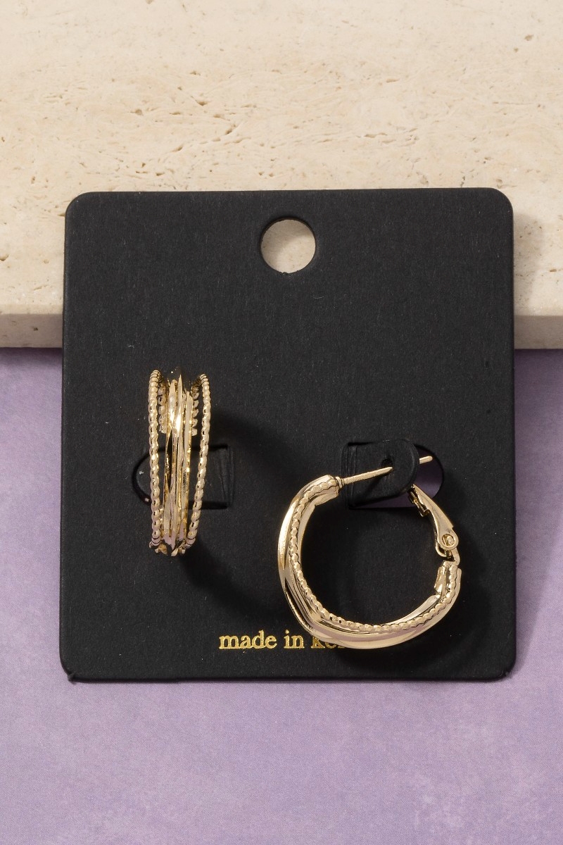 • This pair of hoop earrings brings a stunning multi-band twisted huggie style. Immerse yourself in the world of understated glamour as this pair of hoop earrings effortlessly exudes timeless appeal.